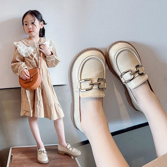 Children Girls Leather Shoes New Spring and Autumn Simple Slip-on Round-toe School Shoes Loafers Flats Moccasins Classic Formal