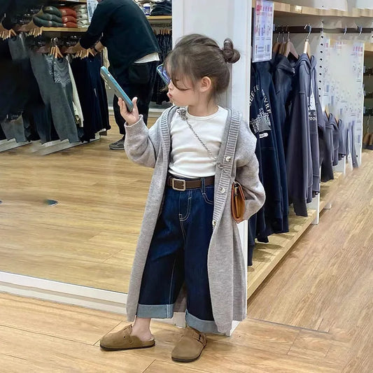 Chaleco tejido largo para niña, para primavera y otoño, outfit casual para niña