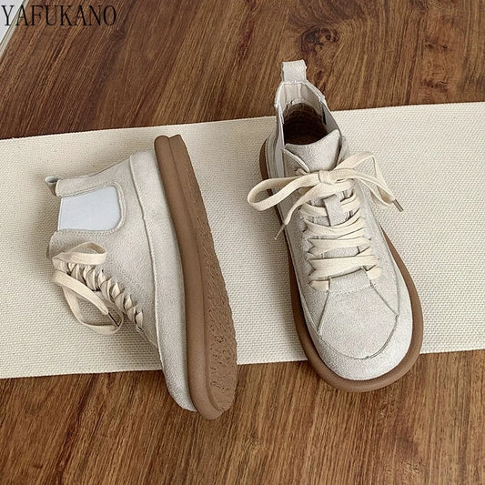 Casuales botas cortas de ante vintage Mori Girl literarias, botas Chelsea de suela plana, hechas a mano para adolescente y mujer, botines de estilo británico cálidos