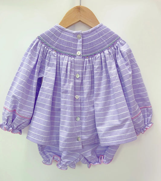 Conjunto de blusa manga larga y bombacho corto para niñas, bordado a mano estilo vintage, algodón puro tipo Oxford