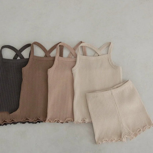 Conjunto de algodón de verano para bebés recién nacidas y niñas polera sin mangas y pantalones cortos