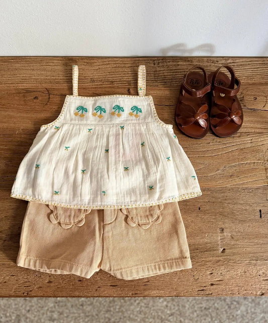 Conjunto de falda o short y blusa de tirantes y flores bordadas de estilo boho con flores de verano