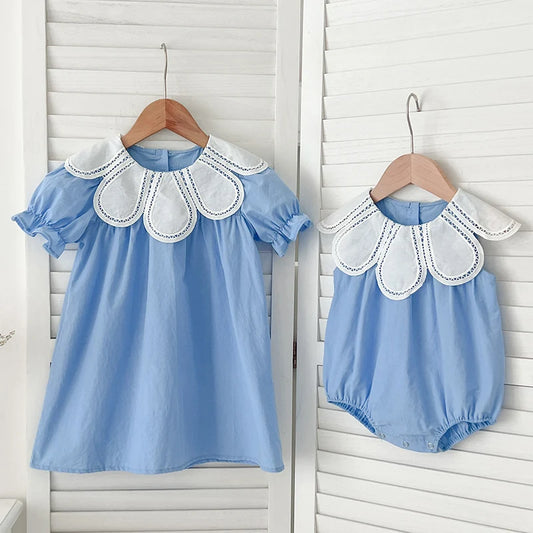 Vestido bordado de verano para bebé y niñas, vestido de princesa con cuello de pétalos en algodón, bombacho de manga corta para fiesta