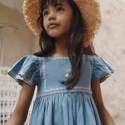 Precioso vestido pastoral para niña de verano, vestido boho bordado