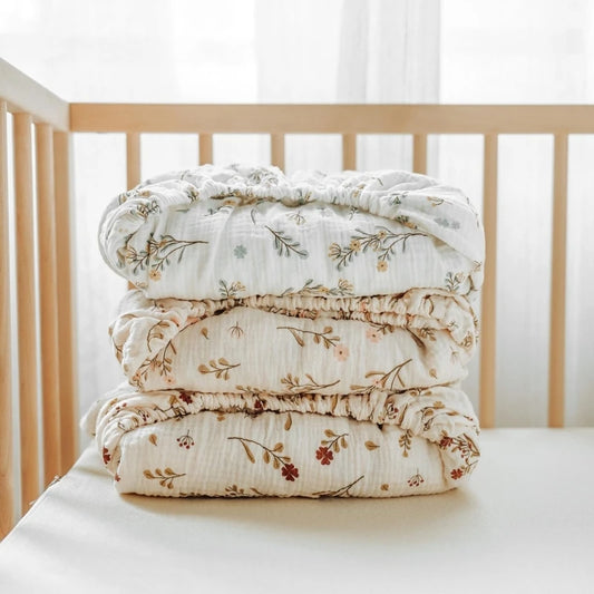 Sábanas de cuna para bebé, sábana de muselina ajustable y supersuave para bebé