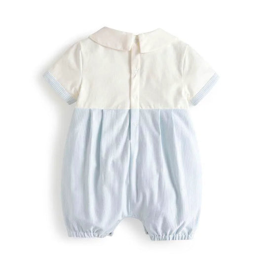 Hermoso y delicado pelele para bebé, estilo moda española, con alforzas y cuellos clásicos vintage, en algodón especial para Verano