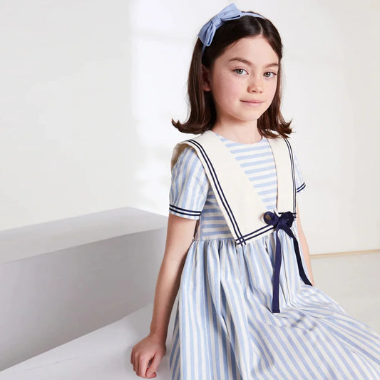 Hermoso vestido clásico de primavera y otoño para bebé y niñas pequeñas, ropa moda española con cuello tipo marinero, vestido de algodón de manga larga para bebé niña
