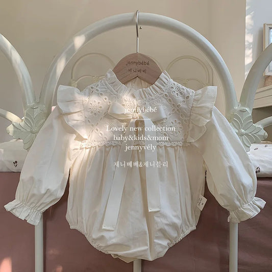 Hermoso bombacho para niñas de 0 a 24 meses, pelele de manga larga de algodón con broderie, bordado, de primavera y otoño, Bombacho de bautizo y casual para bebé niña