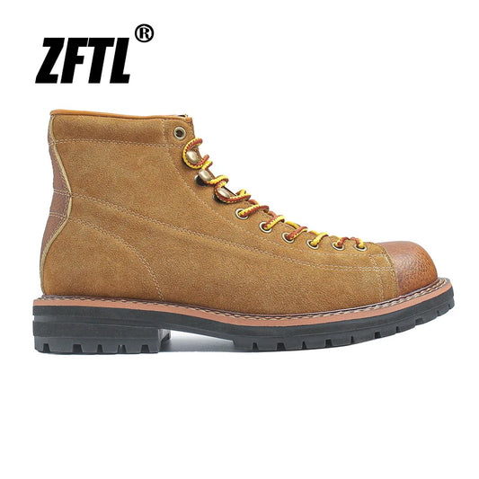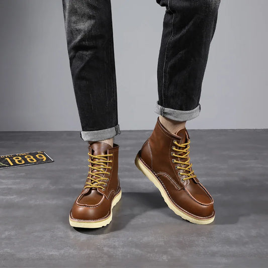 Botas de hombre hechas a mano de cuero auténtico para primavera e invierno, botas de moto, militares vintage, abrigadas botas de nieve