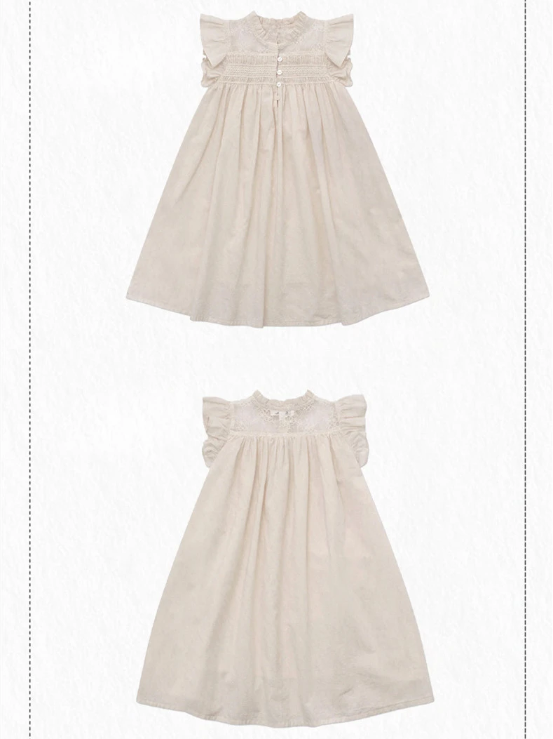 Cotton Hand-Embroidered Flying Sleeves Beige Clothes New Girls Handmade Smocking Dress Pure Birthday Prince Summer 2024