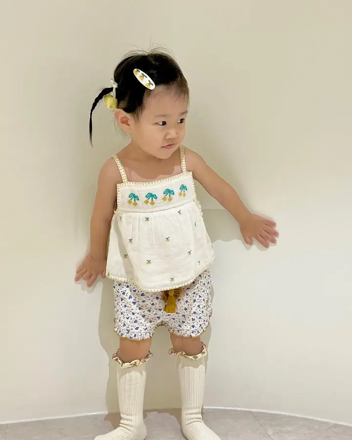 Summer New Girls' Garden Style Couture Embroidered Floral Halter Vest Half Skirt Set Suspender Flower Lapel Girl Dress, Lamb Green