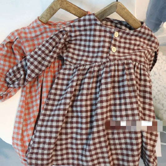 Vestido a cuadros de manga larga para niñas para Primavera y verano 2023 Nuevo vestido casual sencillo de moda
