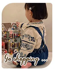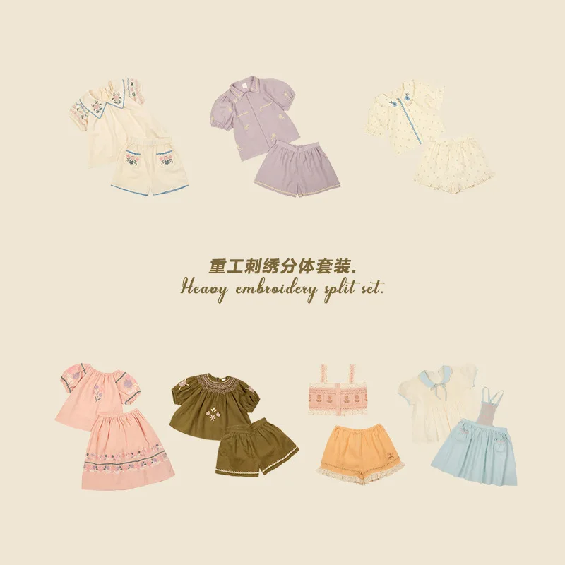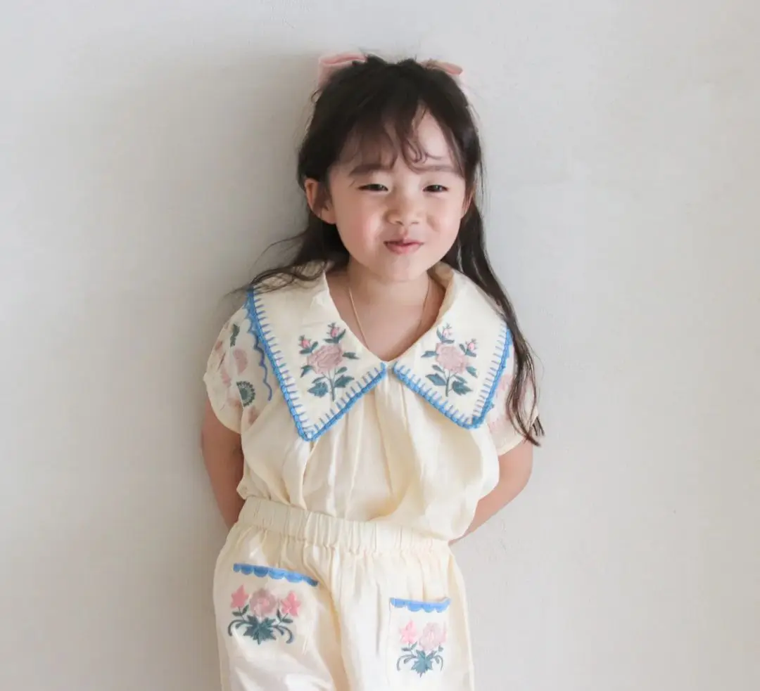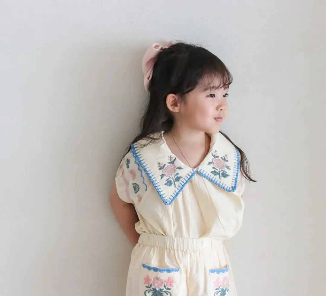 En stock! 2024 été apo filles style pastorale brodé revers haut et short ensemble pour enfants