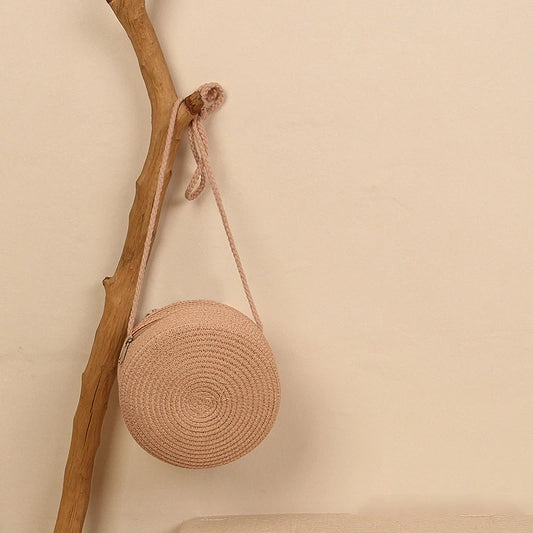 Round Straw Bag Women Woven Beach Crossbody Bag for Ladies Cute Shoulder Rattan Handmade Knitted Candy Color Small Handbag