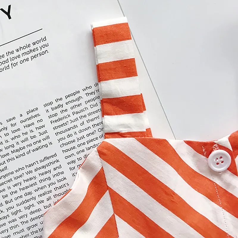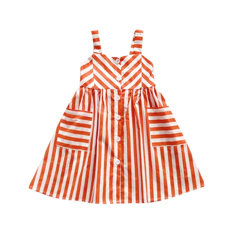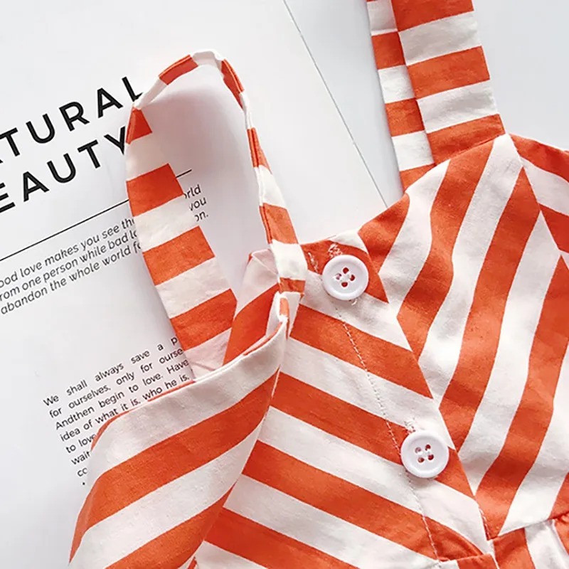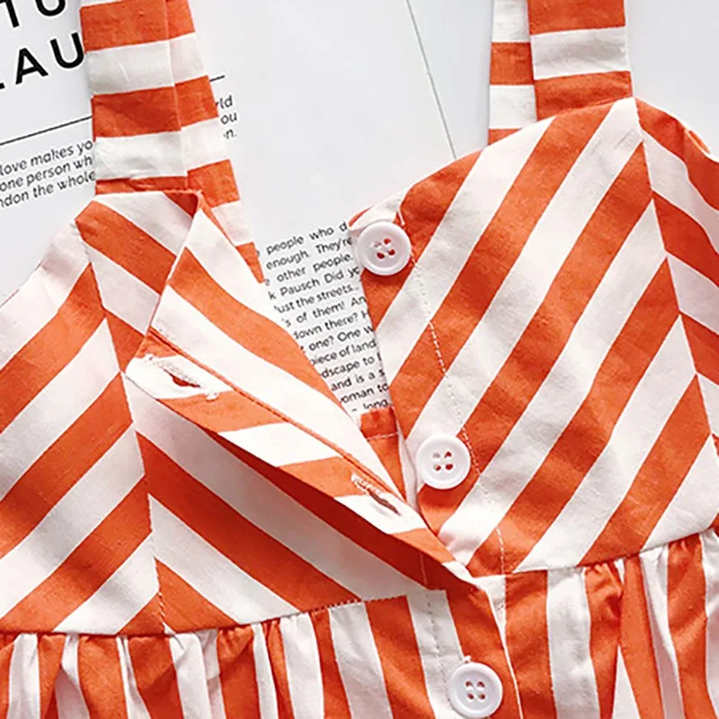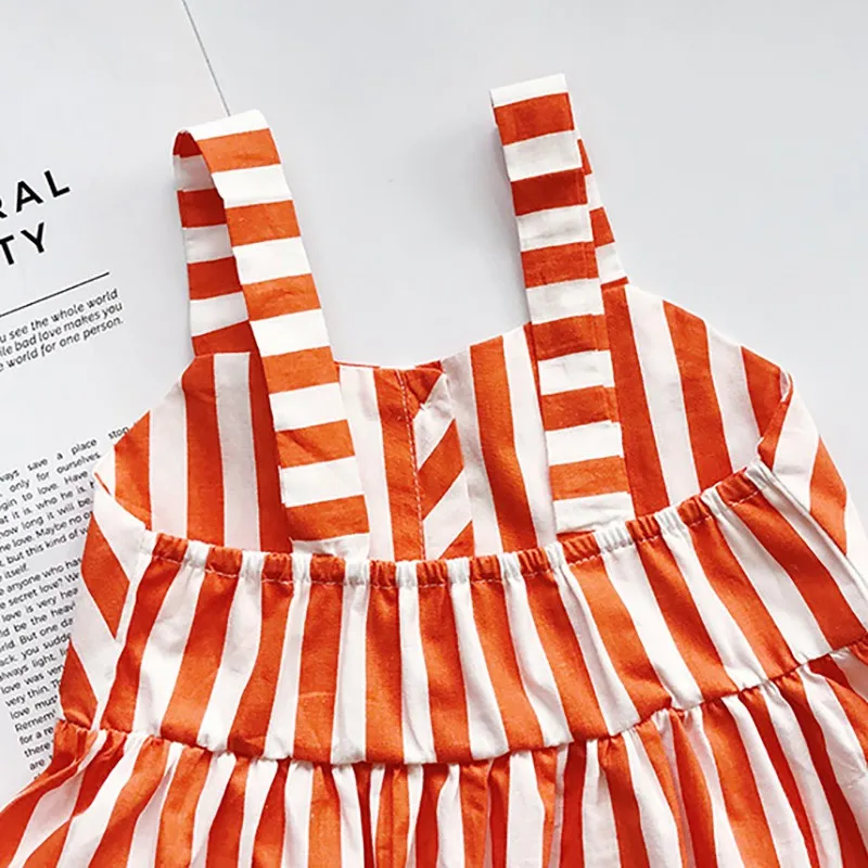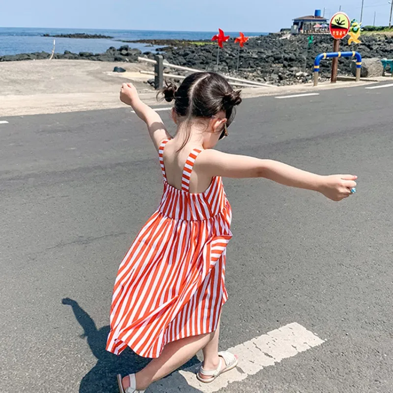 Lindo vestido sin mangas casual de algodón listado para la playa, especial para el verano para niñas