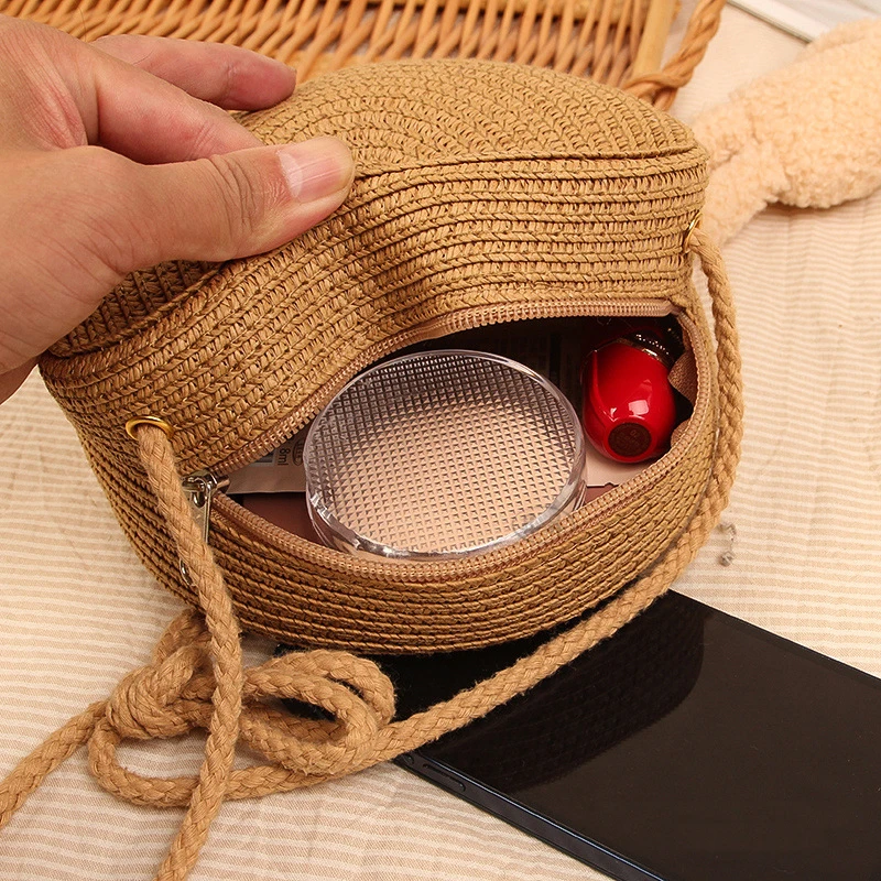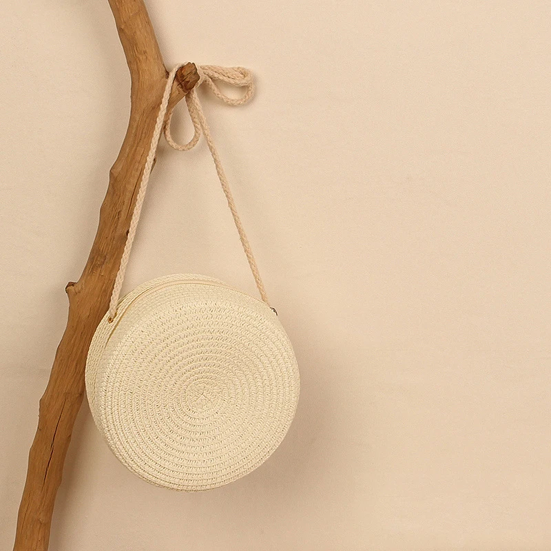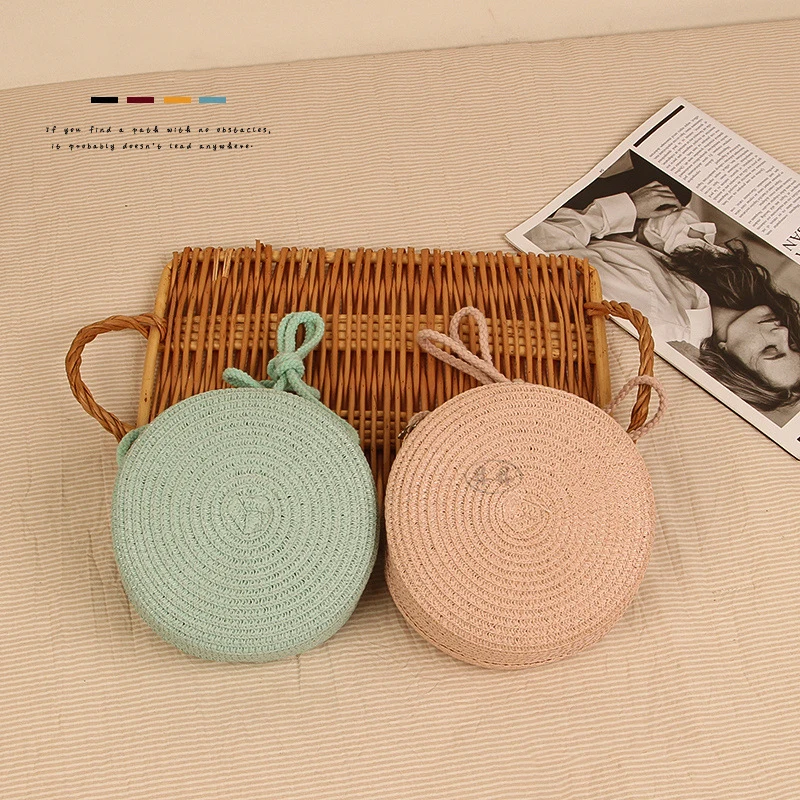 Round Straw Bag Women Woven Beach Crossbody Bag for Ladies Cute Shoulder Rattan Handmade Knitted Candy Color Small Handbag