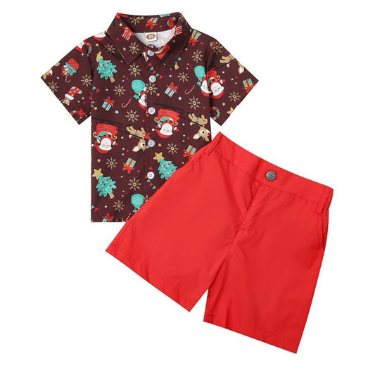 Conjuntos de ropa para niños, camisa y pantalones cortos de Navidad, pantalones cortos de verano, 2 piezas, trajes de Papá Noel para Navidad