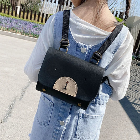 Mochila tipo bolsón Vintage para niños con diseño de oso de dibujos animados, bolso preescolar de cuero de PU
