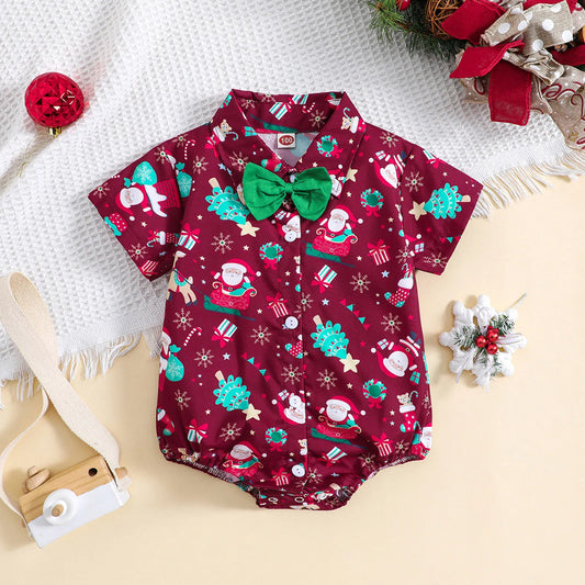 Mono de manga corta con cuello y humita con estampado de ciervo navideño de dibujos animados para niños