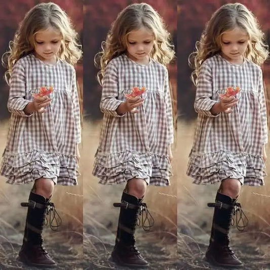 Precioso vestido vintage de manga larga y volantes, a cuadros para bebés y niñas de 3 a 13 años, estilo pastoral, campestre, boho, de algodón para niñas, para 5, 6, 7, 8, 9, 10 y 11 años