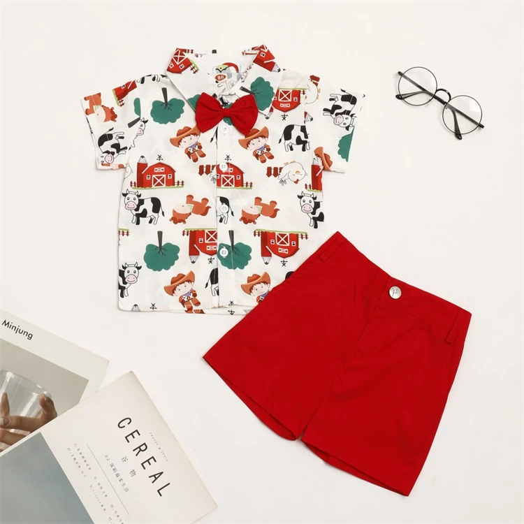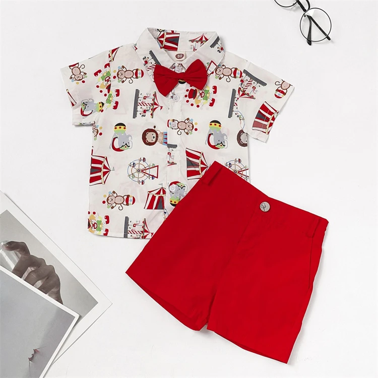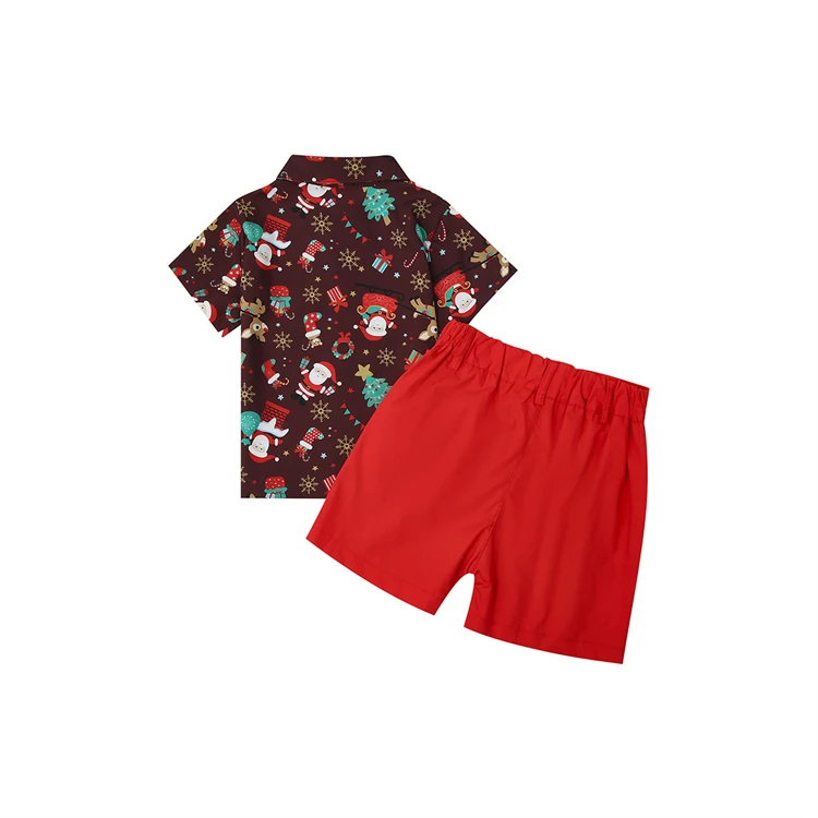 Item Name: Boys Xmas Clothing Sets Santa Shirt Shorts 2pcs Sets With Bowtie