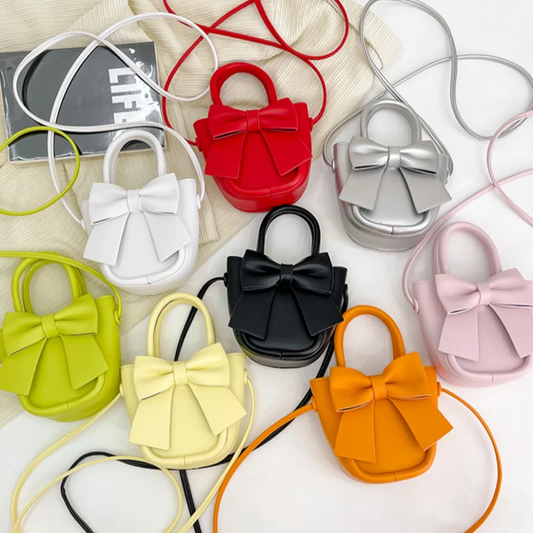 Bolso de hombro o correa cruzada para niña, con hermoso y gran lazo