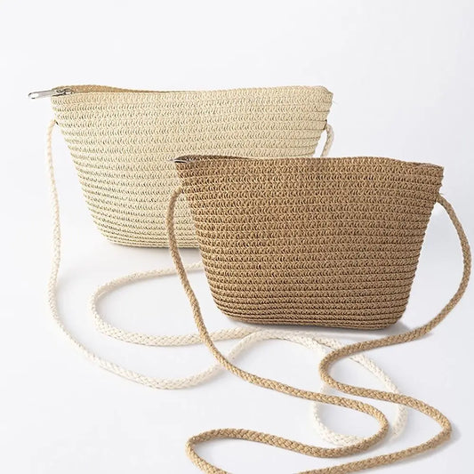 Bolso bandolera de paja, moderno, con asa suave, sencillo, de paja, de gran capacidad, para niños, para playa, viajes
