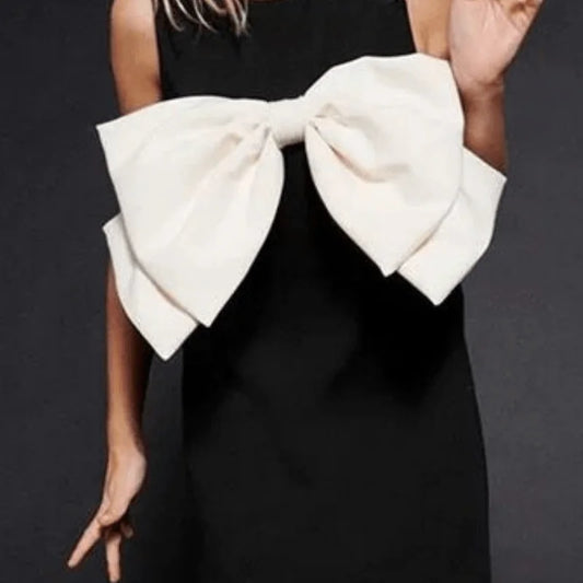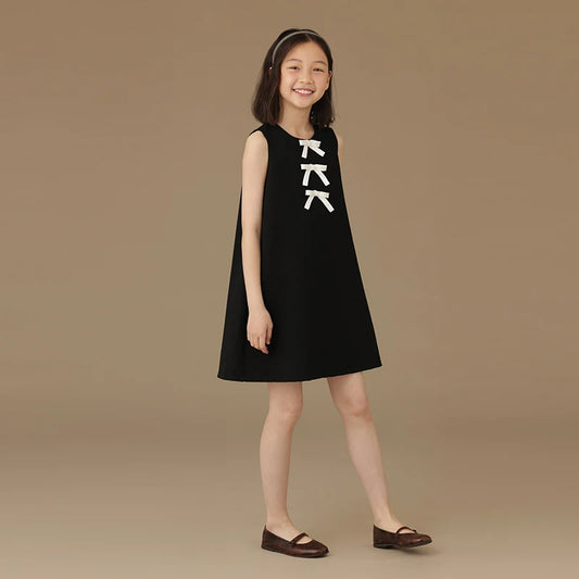 Vestido sin mangas formal para niñas, negro con coquetas cintas blancas