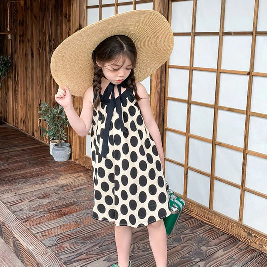 Vestido de verano para niñas, vestido de lunares o rayas con cuello en V, sin mangas, negro con crudo, hermoso y colorido muy fashion para niñas