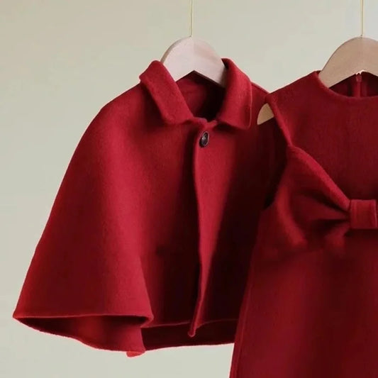 Vestido y capa de lana con lazo para niña, princesa, para invierno, primavera y otoño, con cuello de princesa, para Navidad y Año Nuevo, cumpleaños y fiestas, de 1 a 12 años
