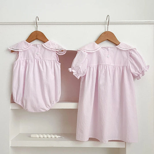 Vestido y mameluco de bebé de primavera y otoño, vestido de hermanas, vestido con bordado de flores para niñas pequeñas, atuendo para niñas pequeñas, Vestido de bautizo, Bombacho de bautizo