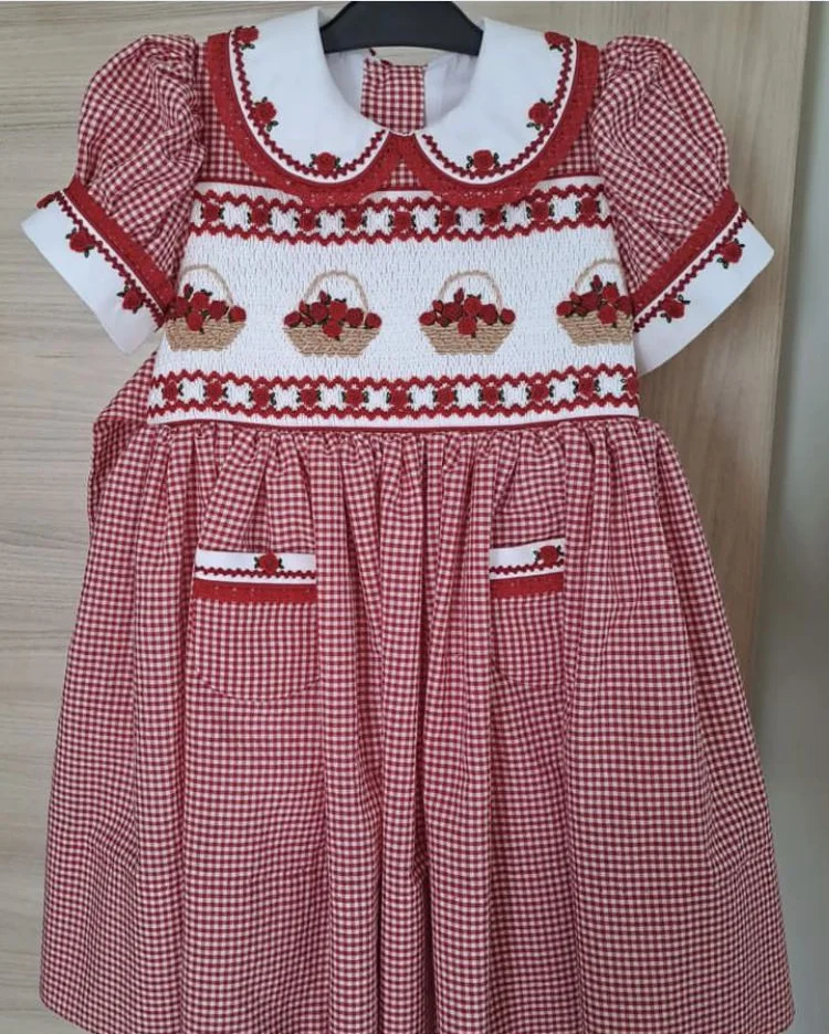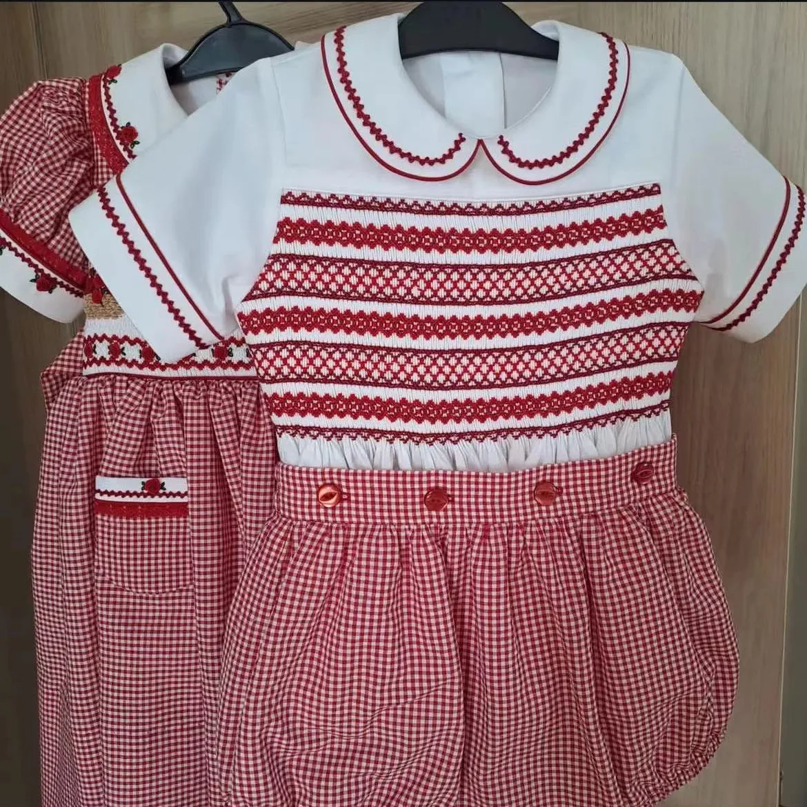 Vestido y bombacho vintage para hermanos, clásico cuadrillé con bordado rojo de verano para niños de 0 a 6 años, ropa para cumpleaños, vacaciones, Pascua, Navidad, fotografía