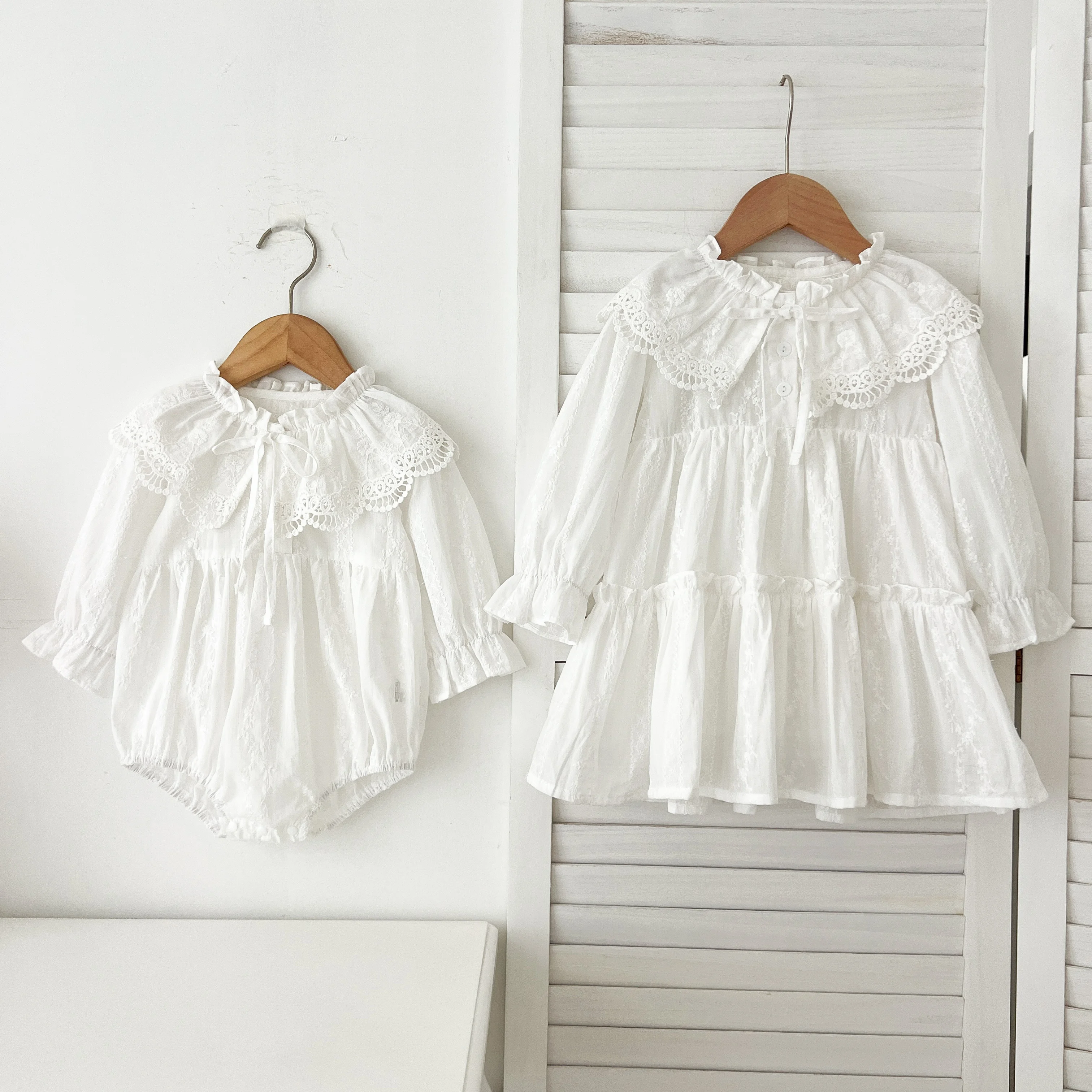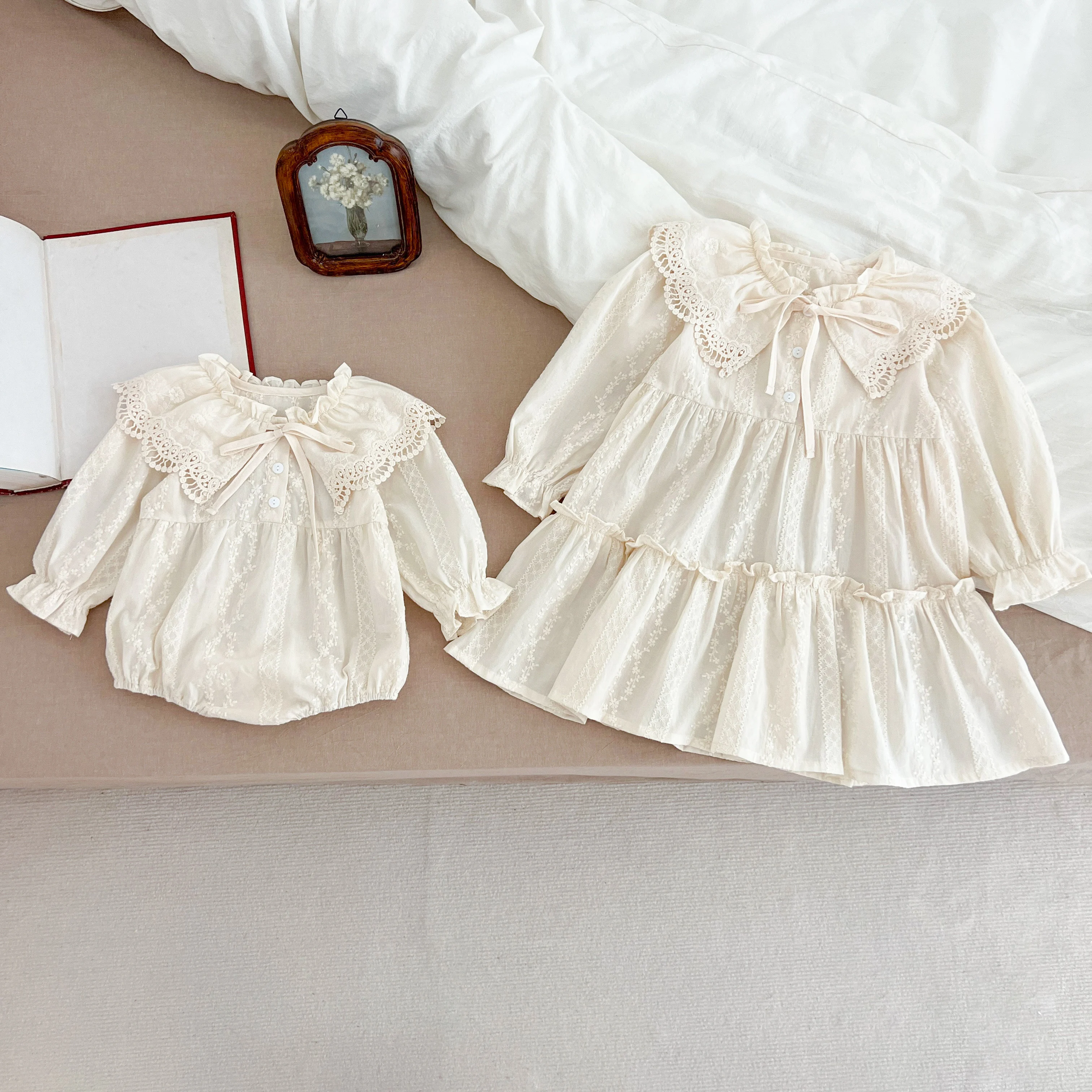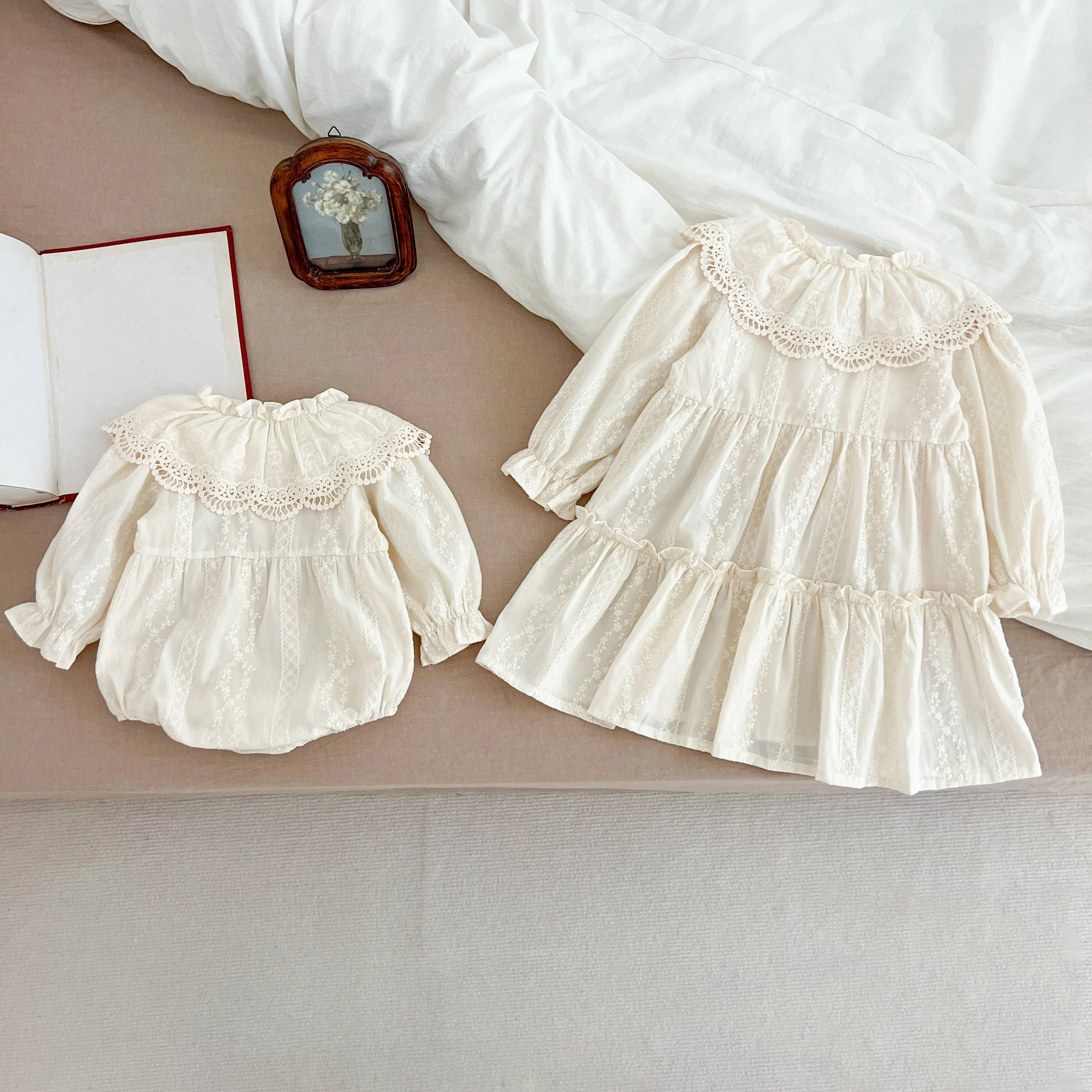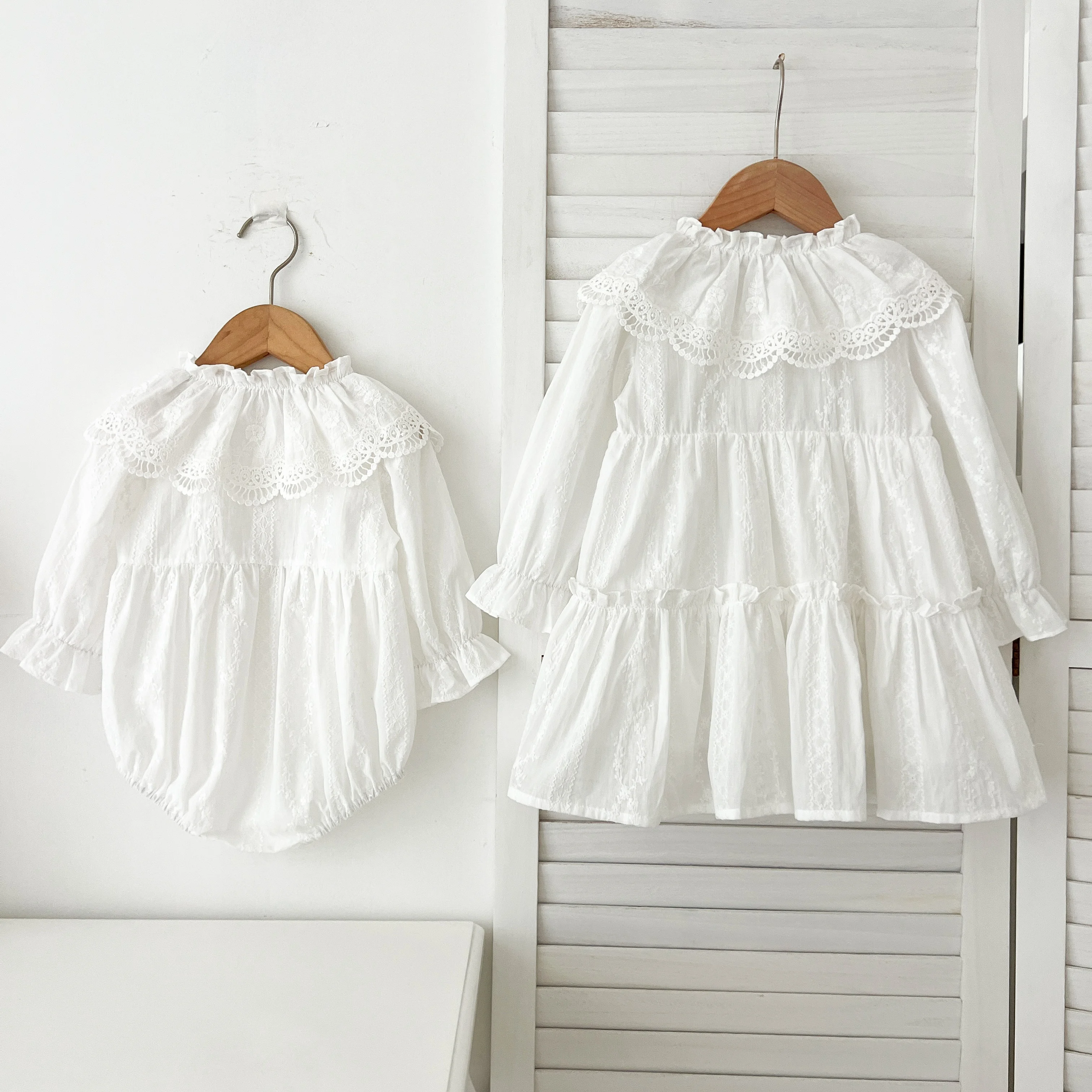 Vestido y mameluco de primavera y otoño para niñas de 3m a 6 años, con encaje bordado, Vestido de bautizo, Bombacho de bautizo para bebé niña, conjunto hermanas, vestido de princesa de manga larga