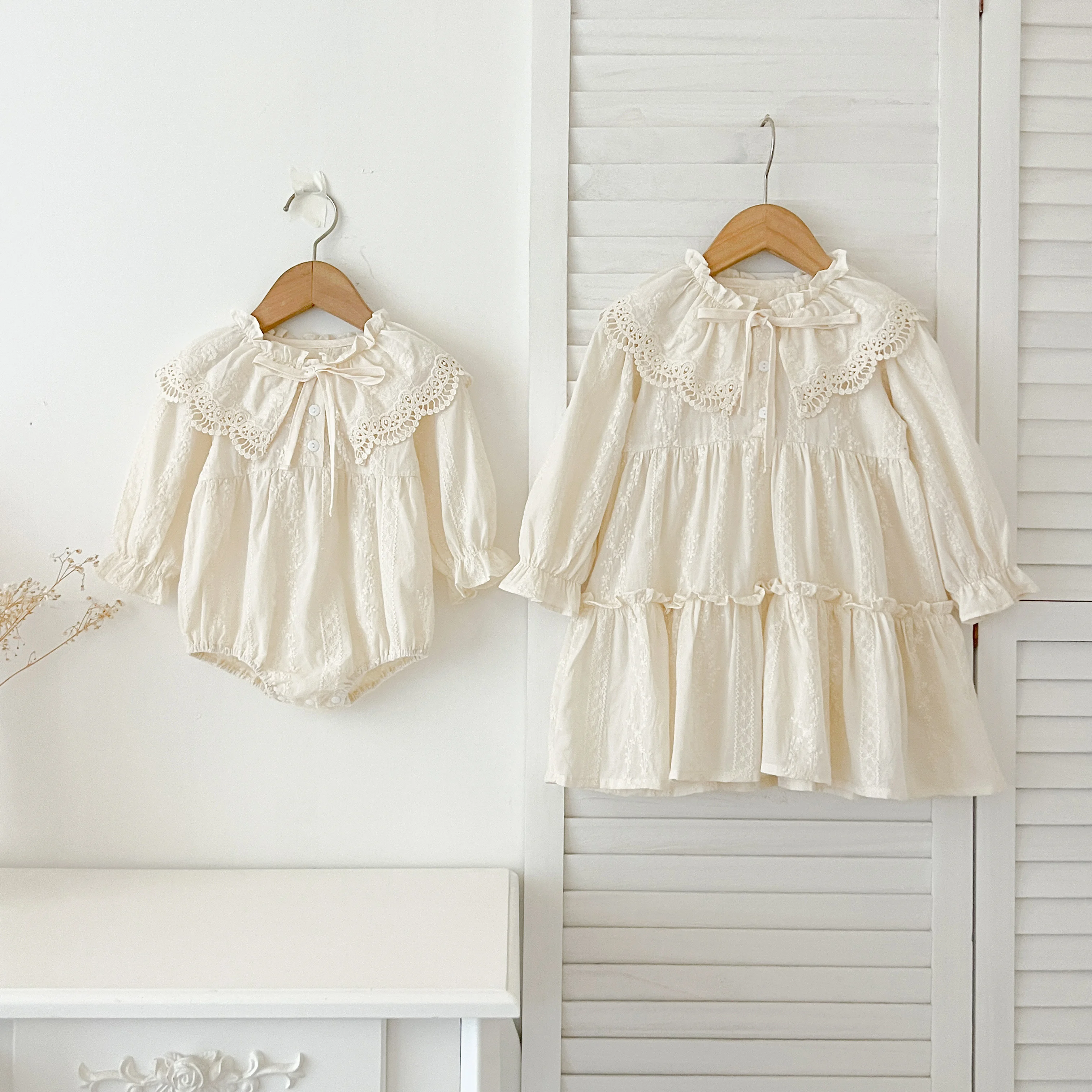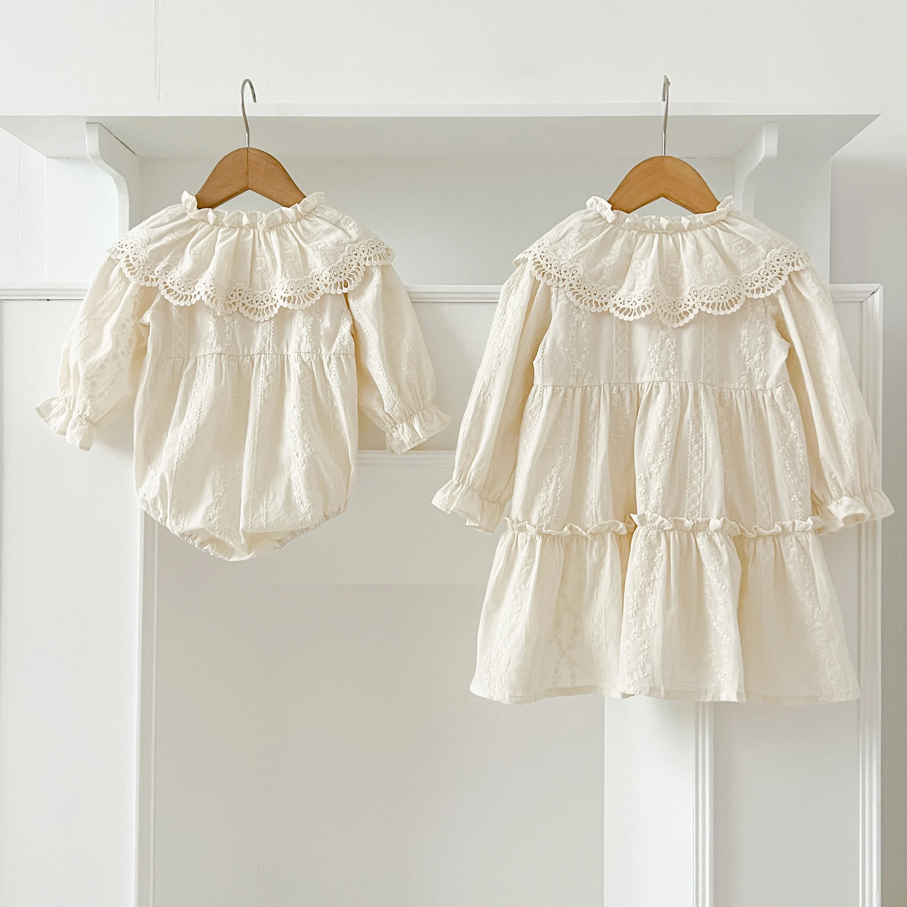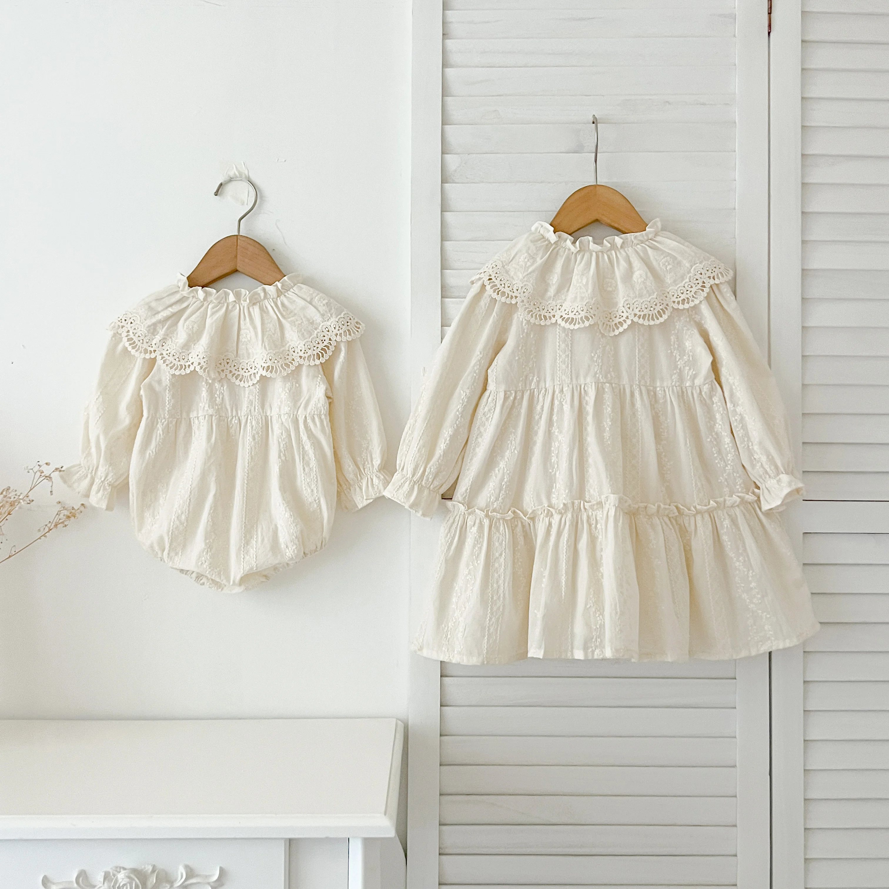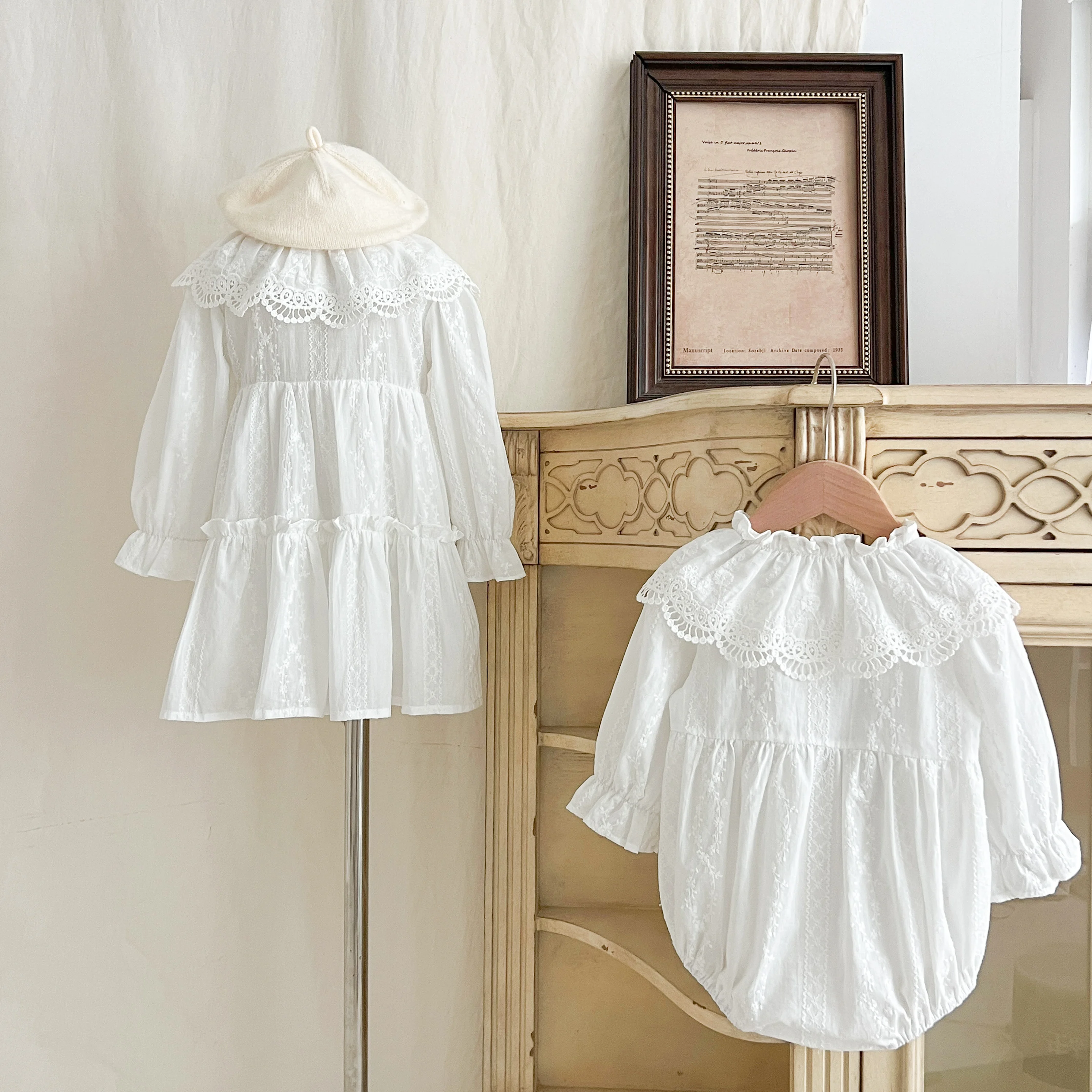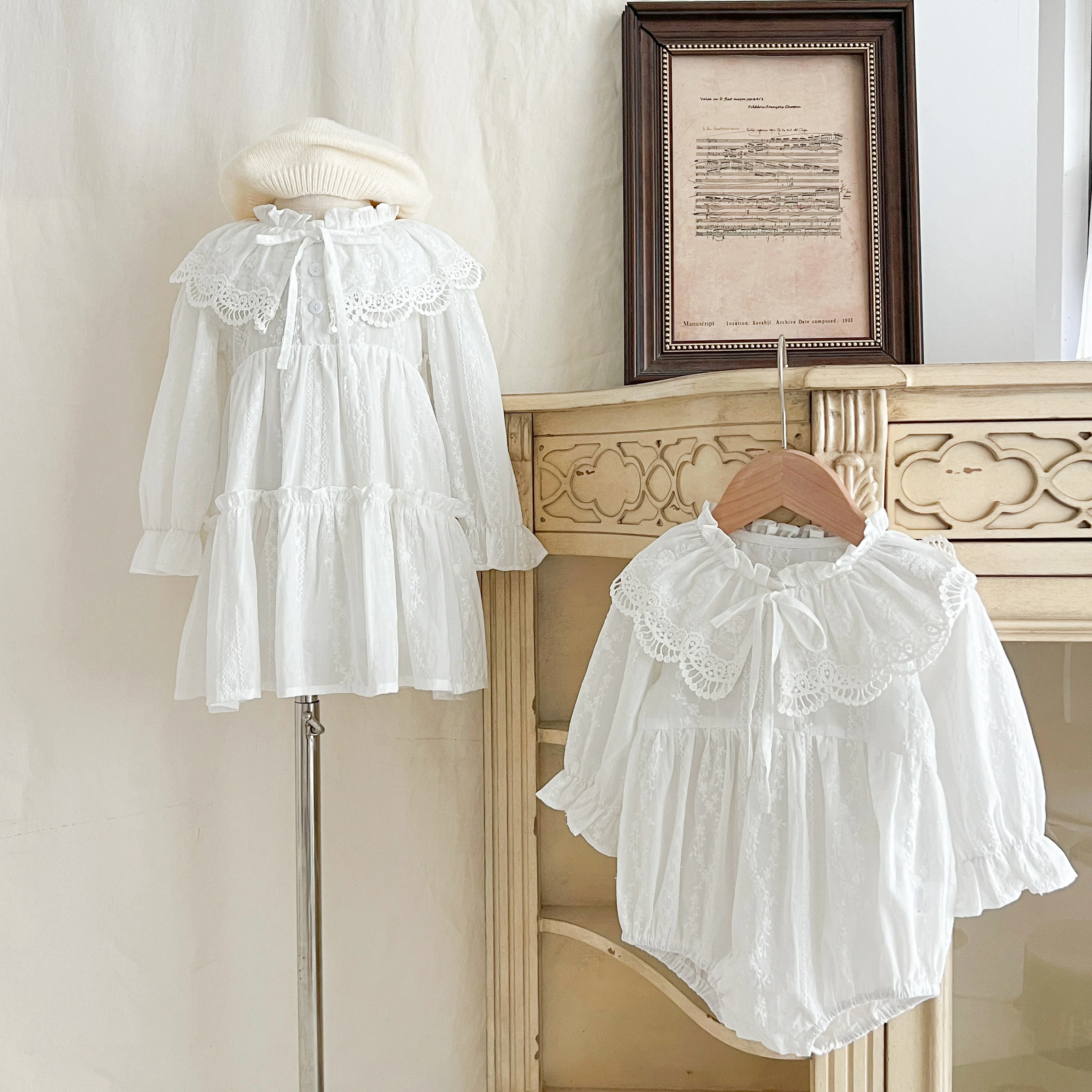 Vestido y mameluco de primavera y otoño para niñas de 3m a 6 años, con encaje bordado, Vestido de bautizo, Bombacho de bautizo para bebé niña, conjunto hermanas, vestido de princesa de manga larga