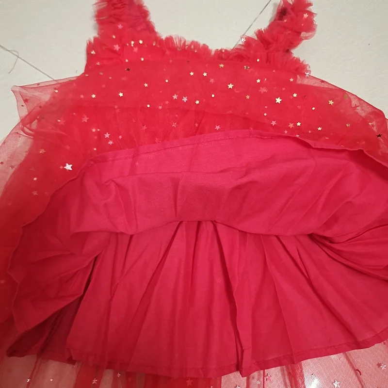 Lindo vestido de princesa de tul para niñas de Navidad, vestido de lentejuelas con estrellas para niñas pequeñas