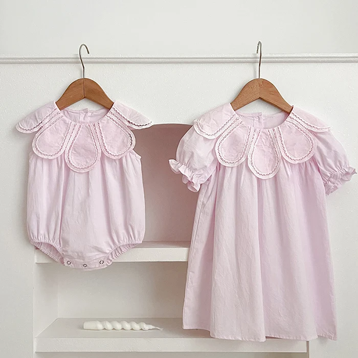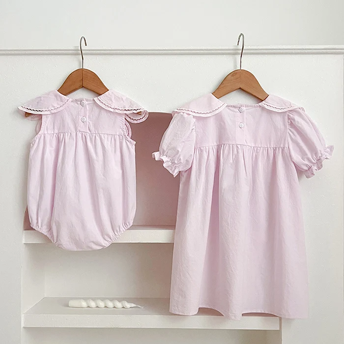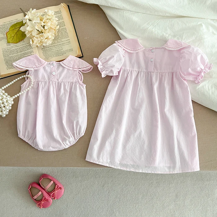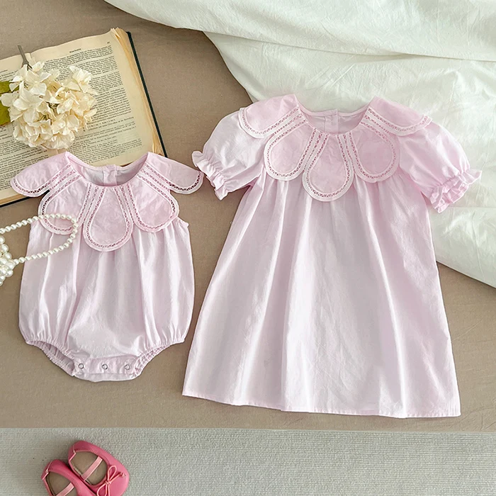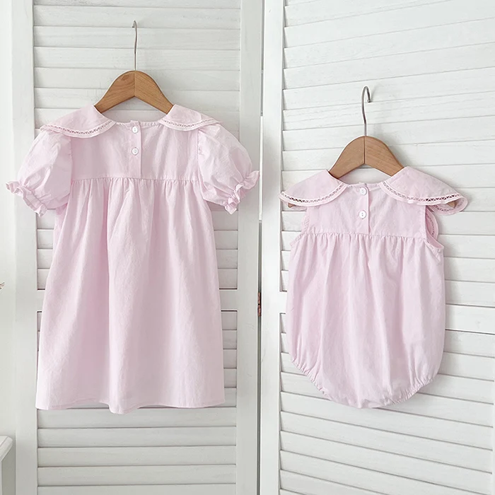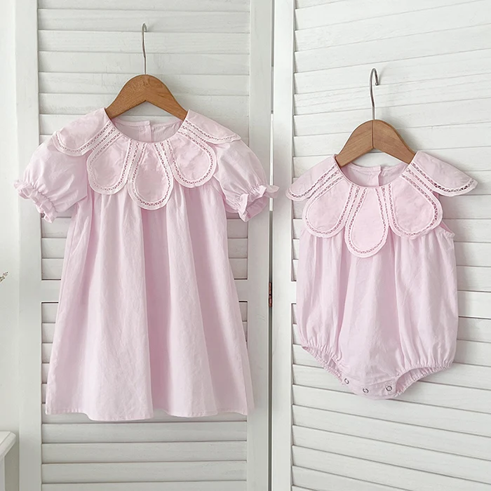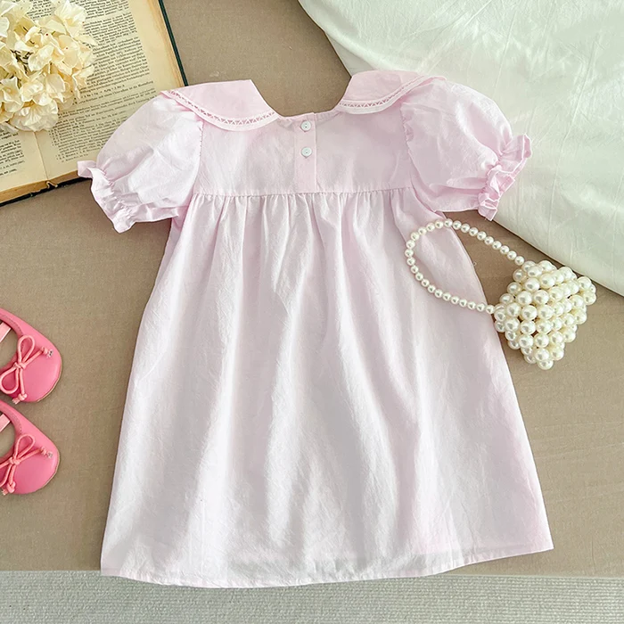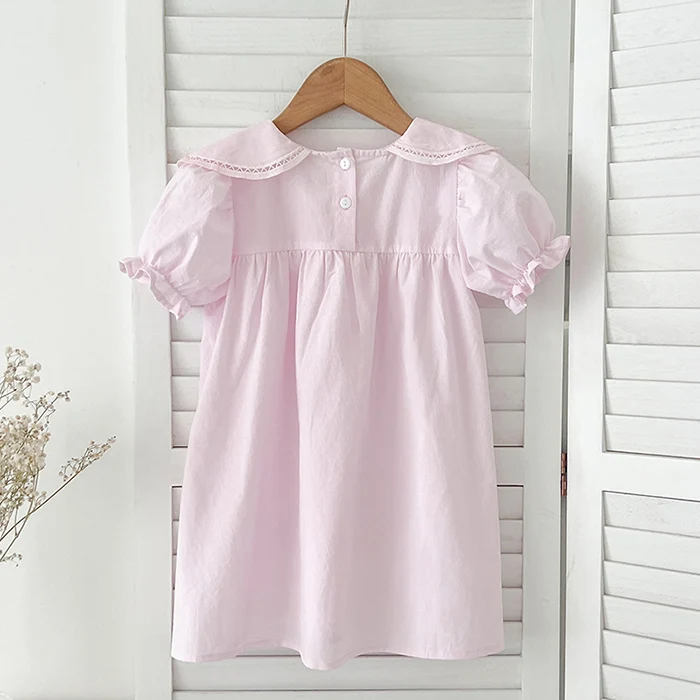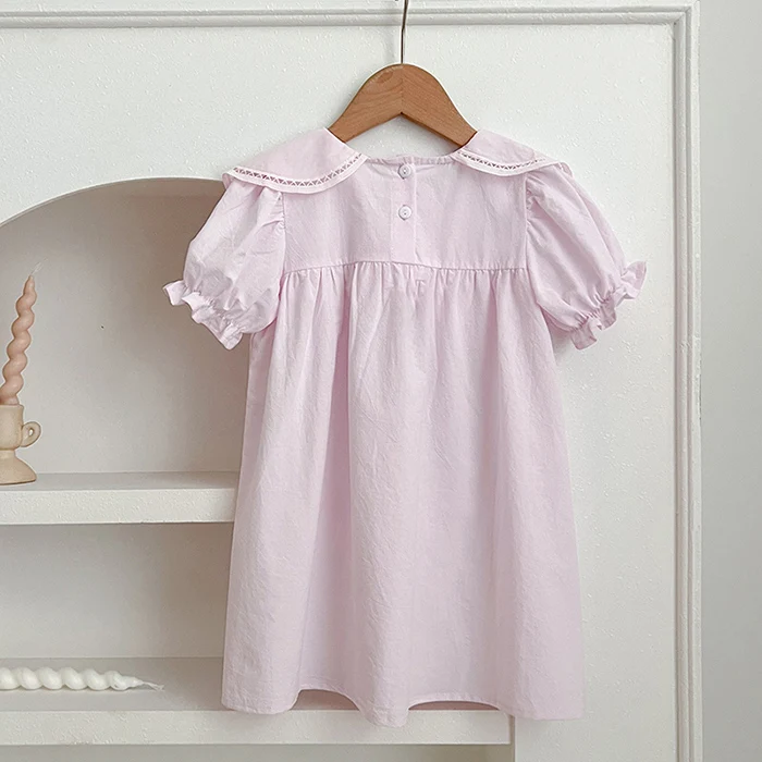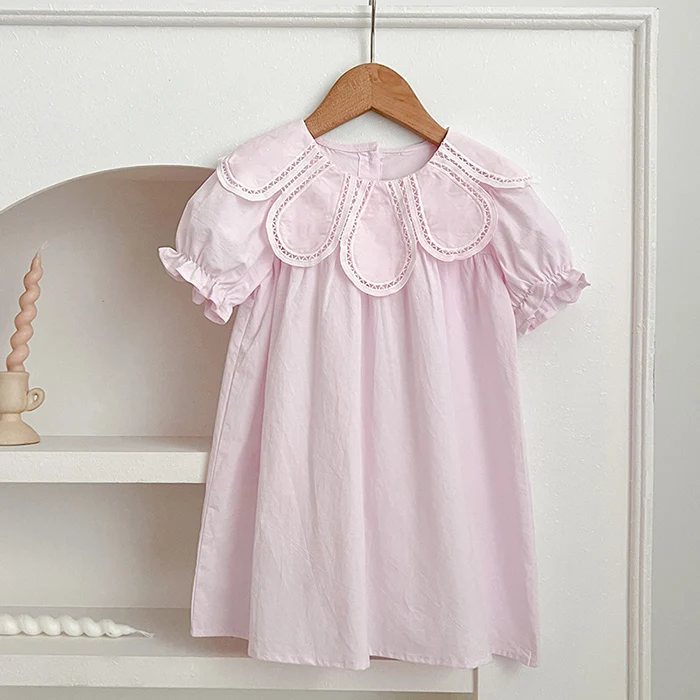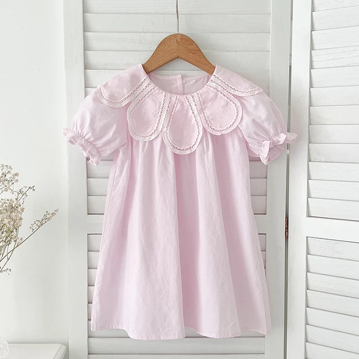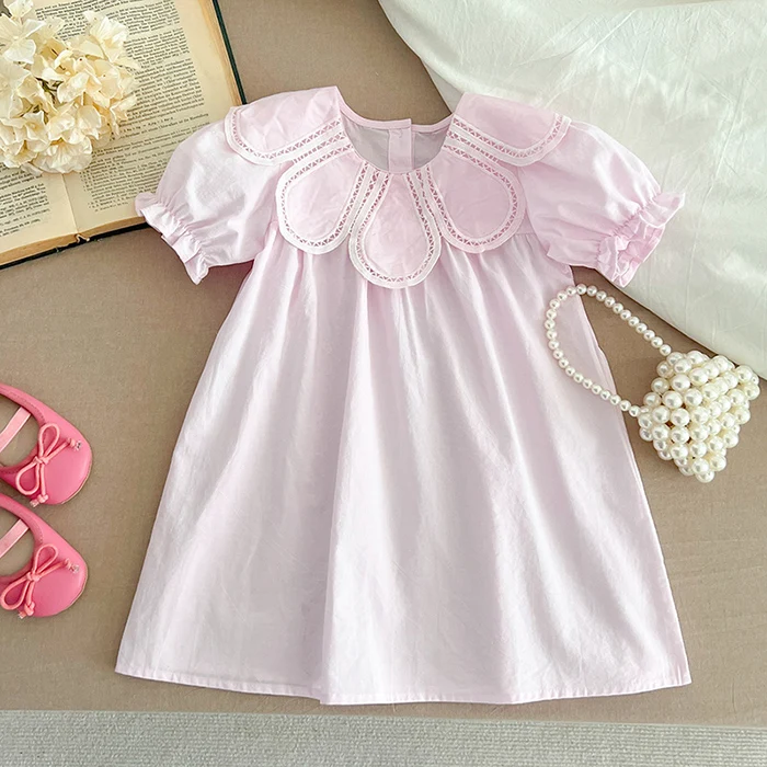 Vestidos de princesa de verano para niñas, de manga corta, de algodón, de color liso, amplio cuellos Peter Pan, para fiesta