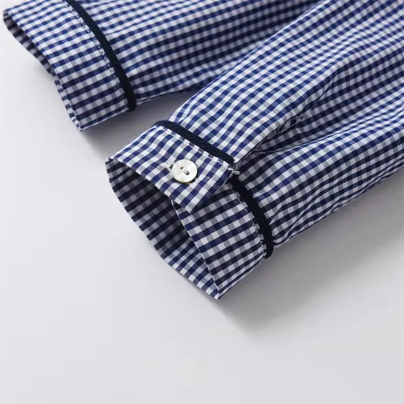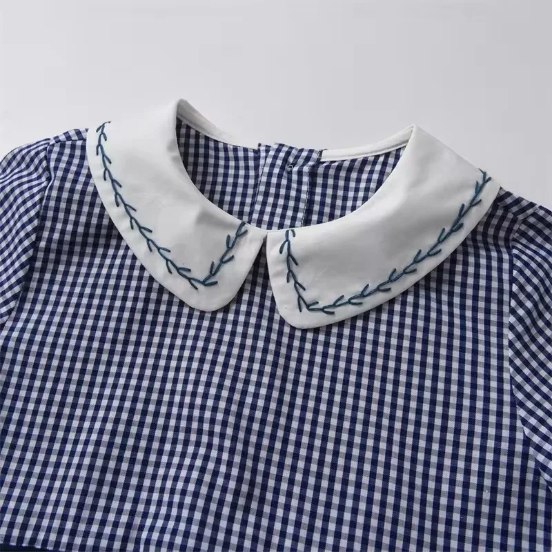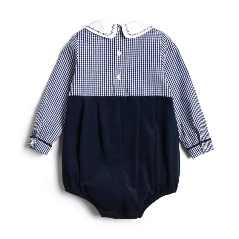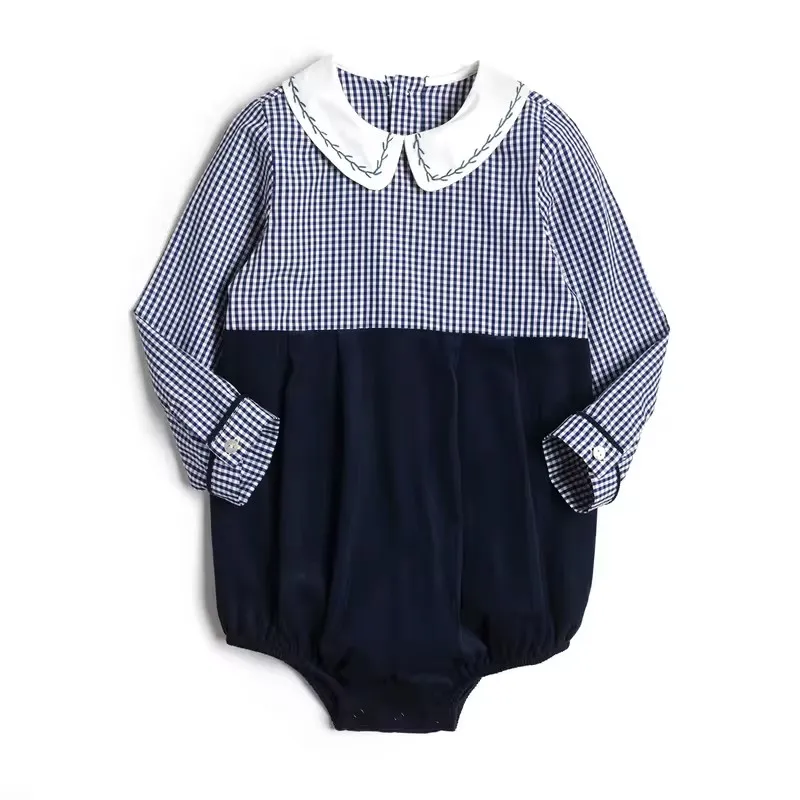 Mameluco increíblemente lindo, bombacho clásico con cuello bordado para bebés y niños pequeños, ropa infantil de boutique española, manga larga para otoño o invierno, algodón cuadrillé y mil rayas.