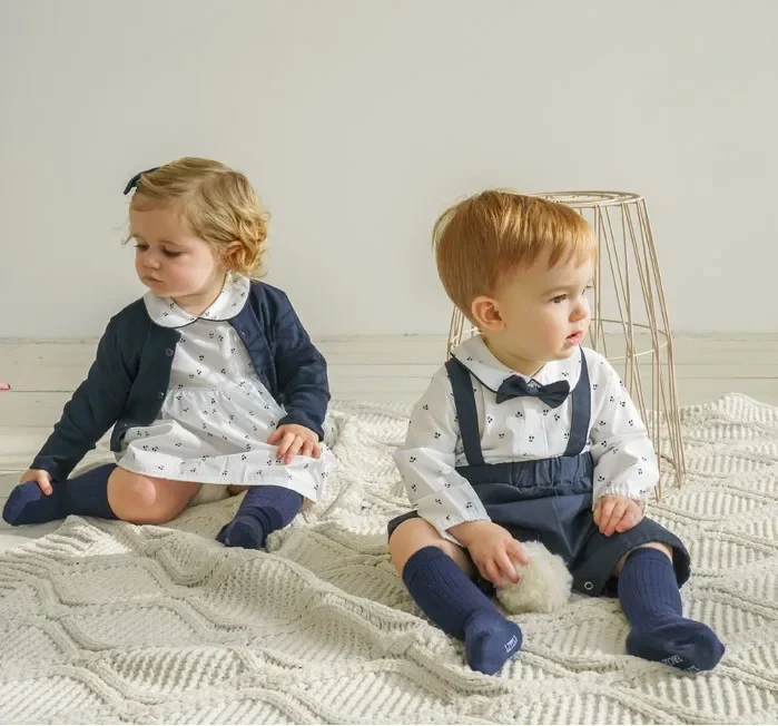 Trajes a juego para hermanos y hermanas, bombacho y vestido manga larga, moda española para bebés y niños pequeños, otoño, invierno y primavera