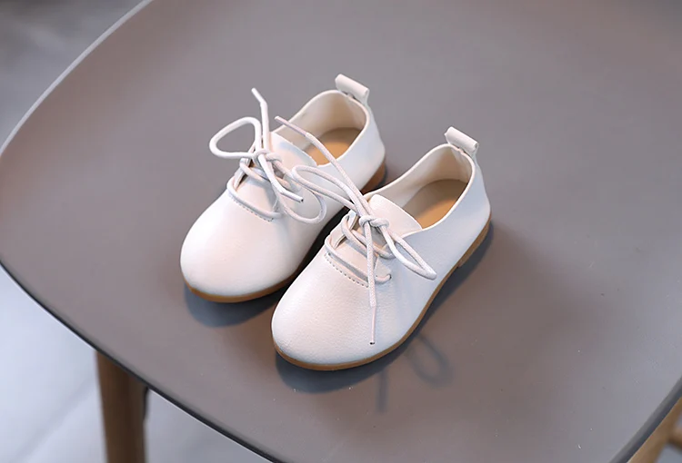 Zapatos casuales tipo cuero para niñas, con cordones, suela blanda antideslizante, cómodos y transpirables