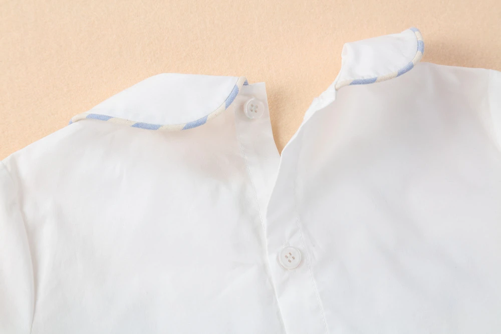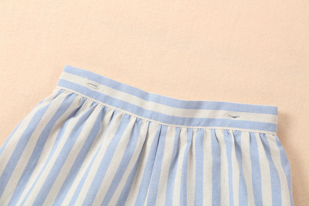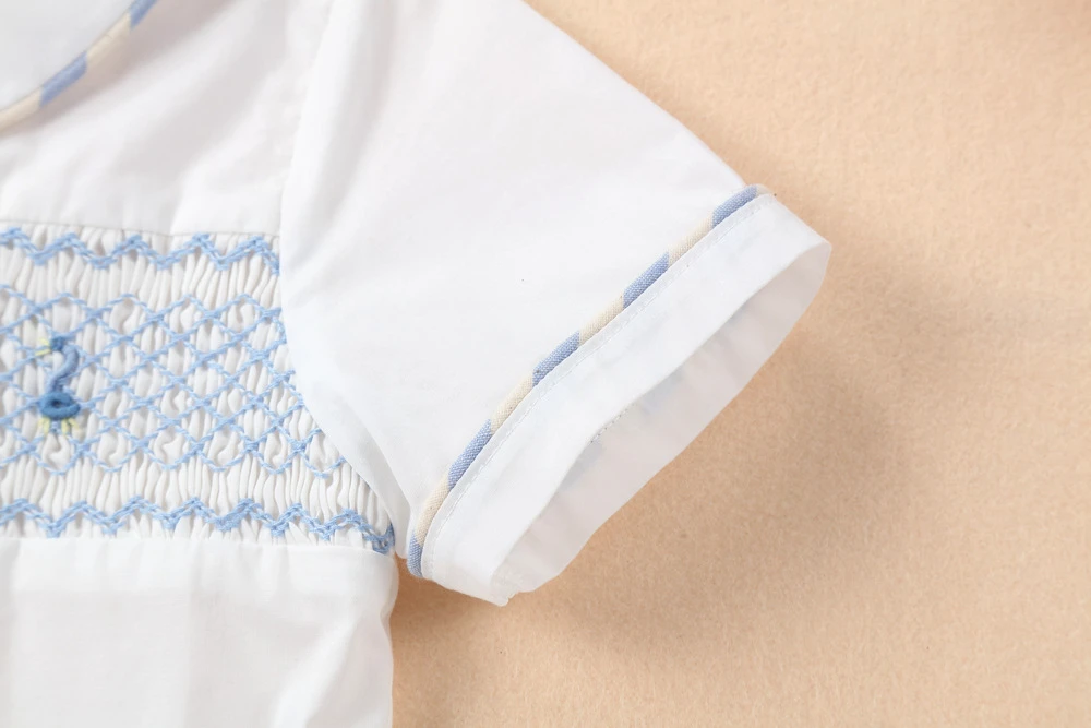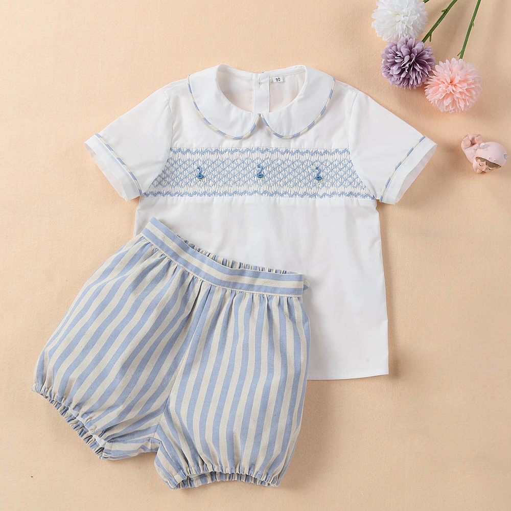 Hermosos outfit en juego para hermanos, bebés y niños, moda de boutique española, vestido, bombacho, en algodón rayado celeste, cuello marinero y lazo, bordado punto smock, hecho a mano