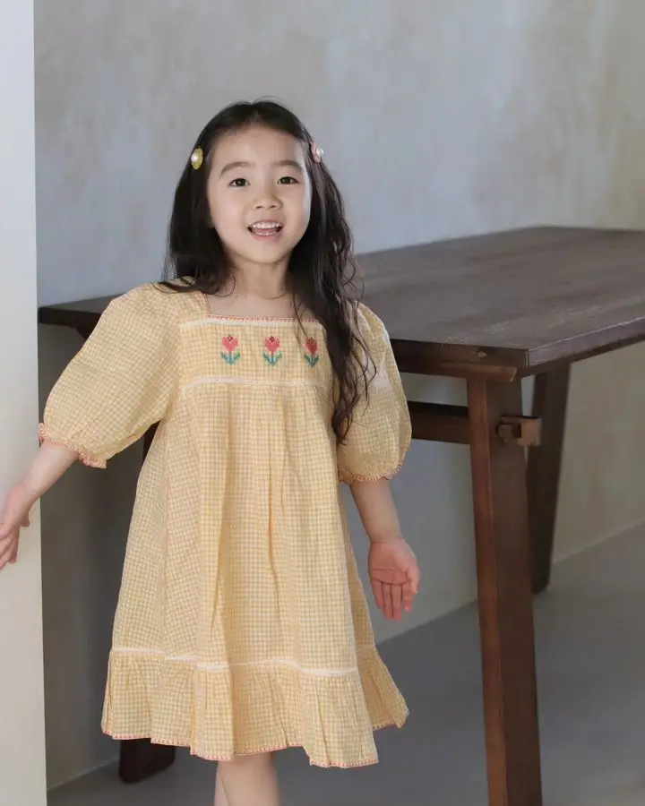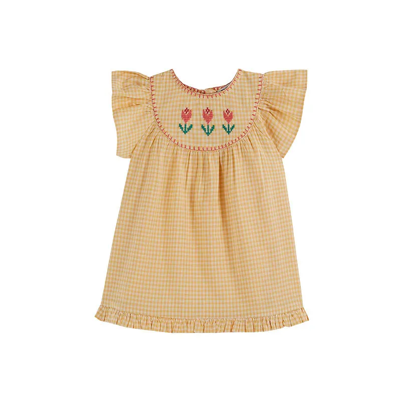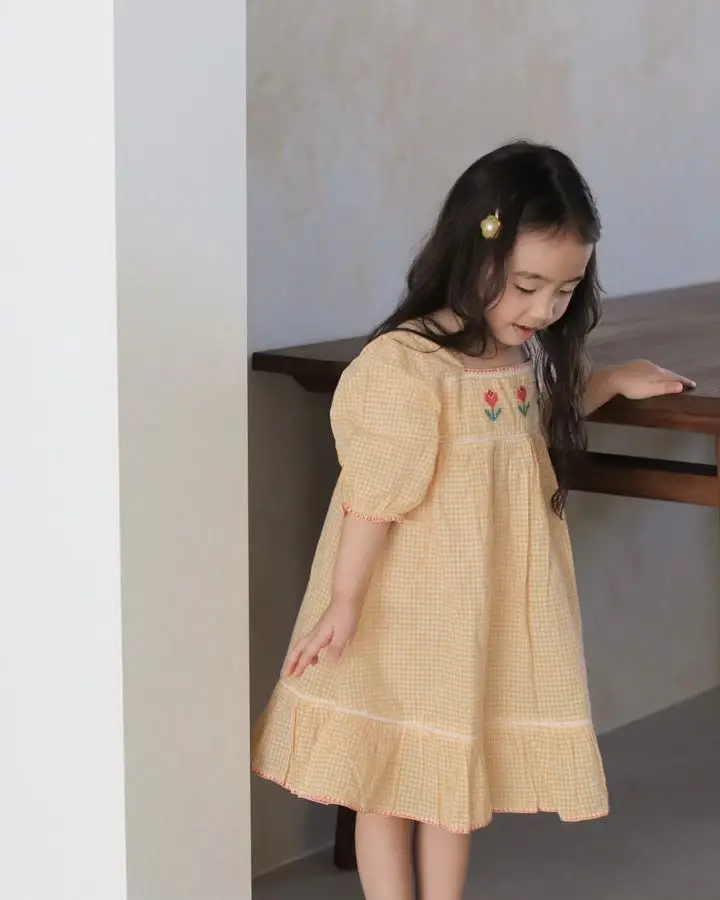 Vestidos Boho bordados con flores para niñas con solapa de flores bordadas Vestido de fiesta Faldas de fiesta de la industria pesada