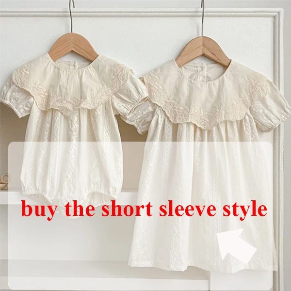 Vestido y mameluco de bebé de primavera y otoño, vestido de hermanas, vestido con bordado de flores para niñas pequeñas, atuendo para niñas pequeñas, Vestido de bautizo, Bombacho de bautizo