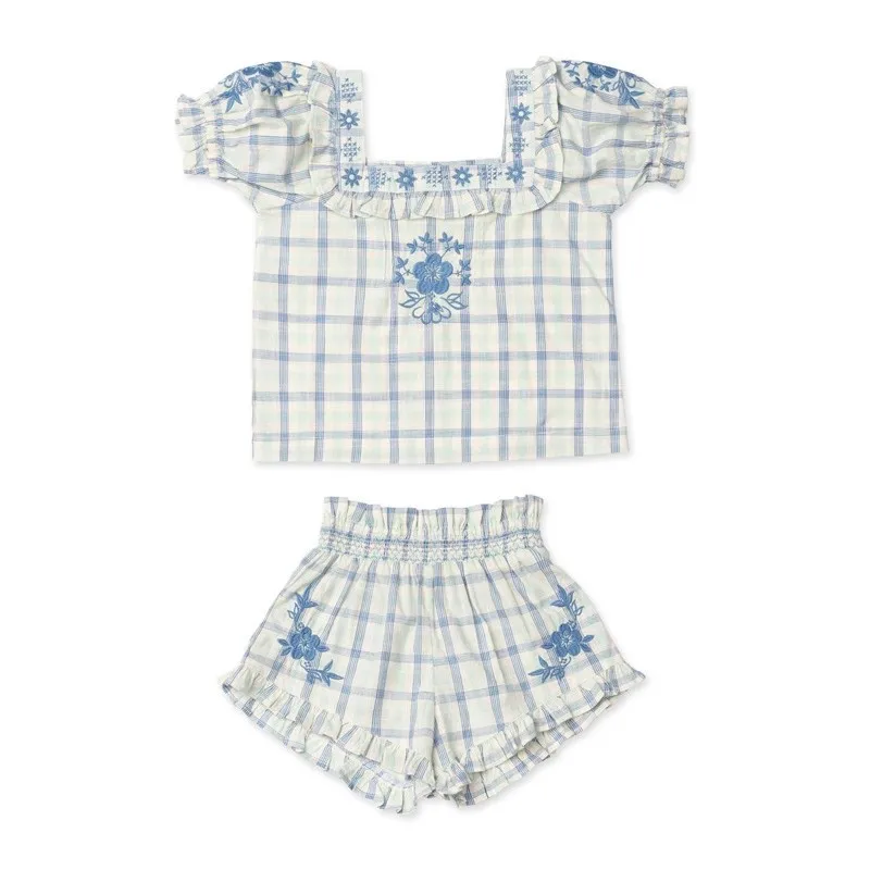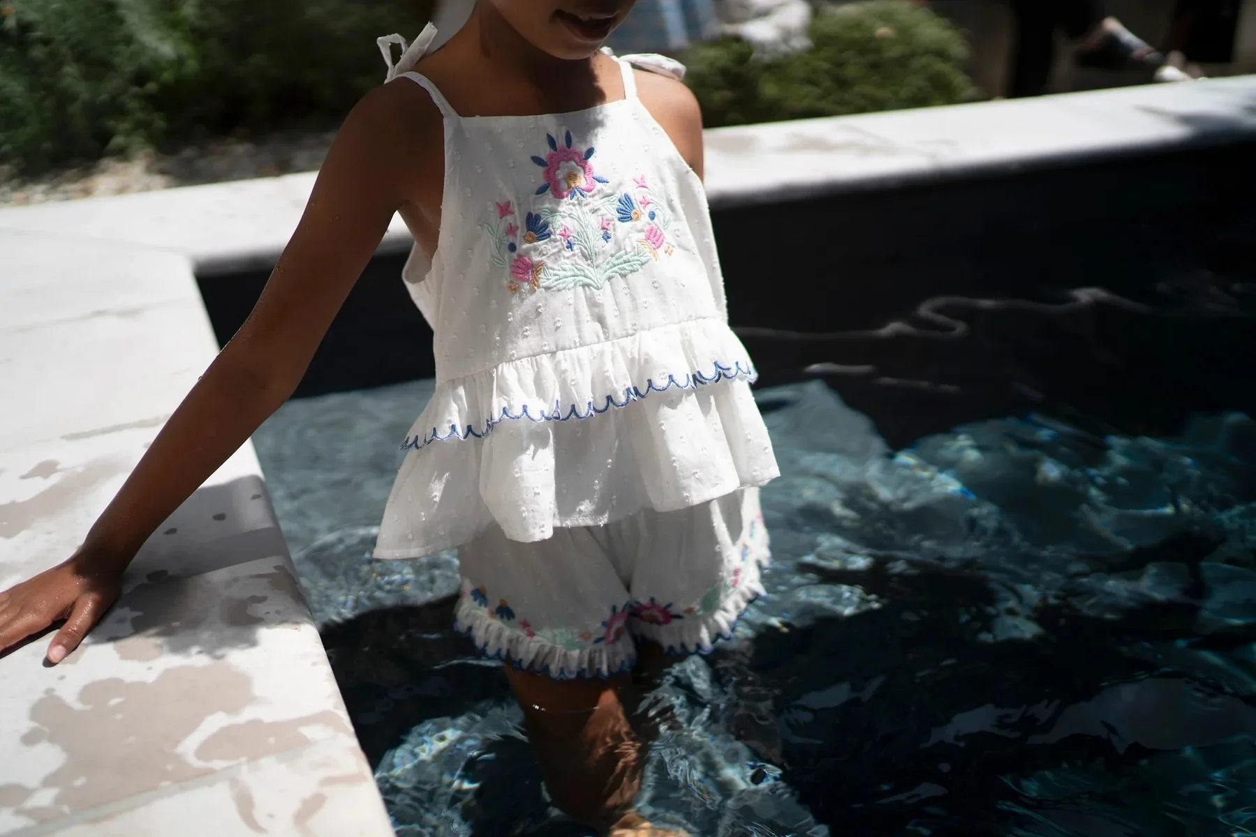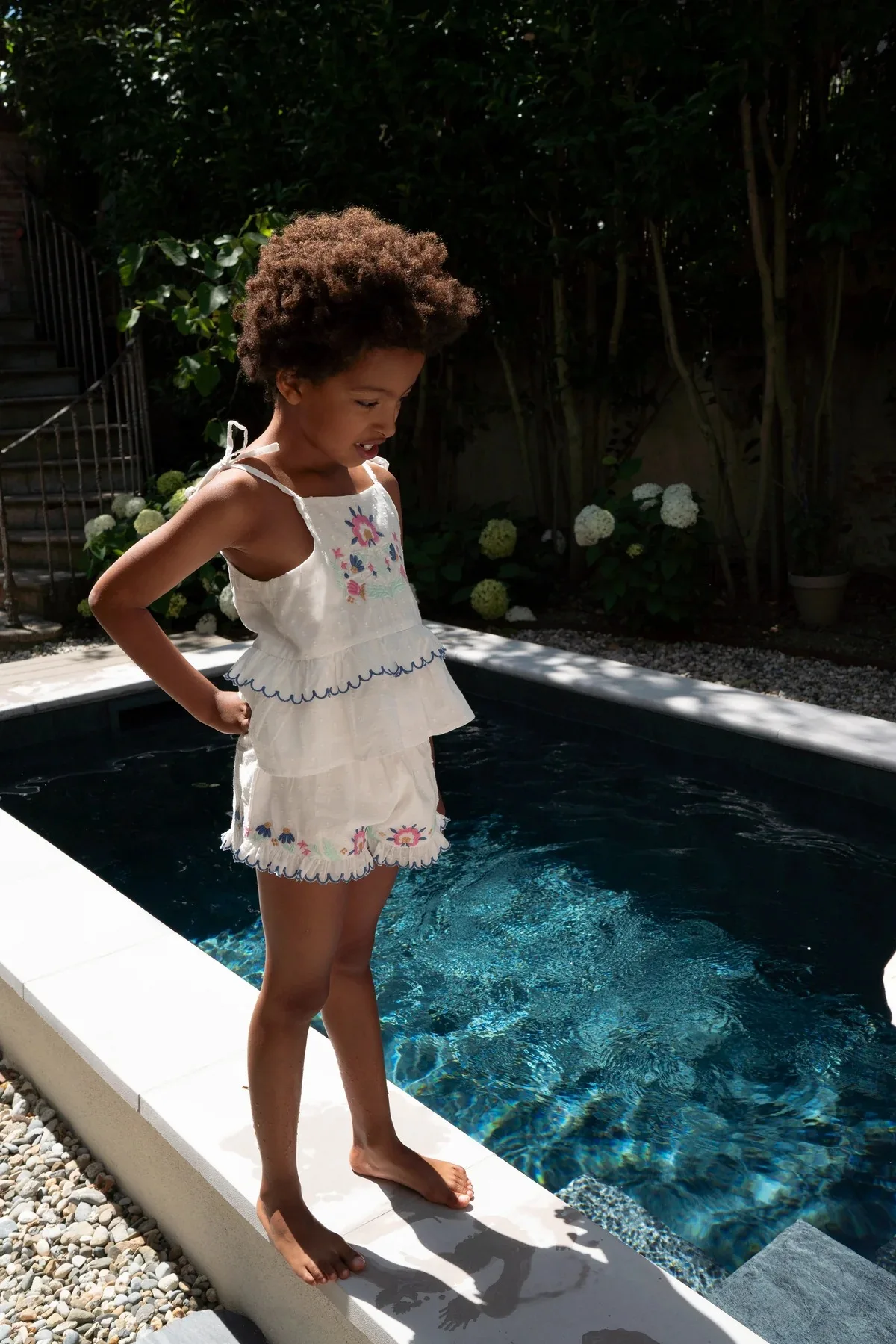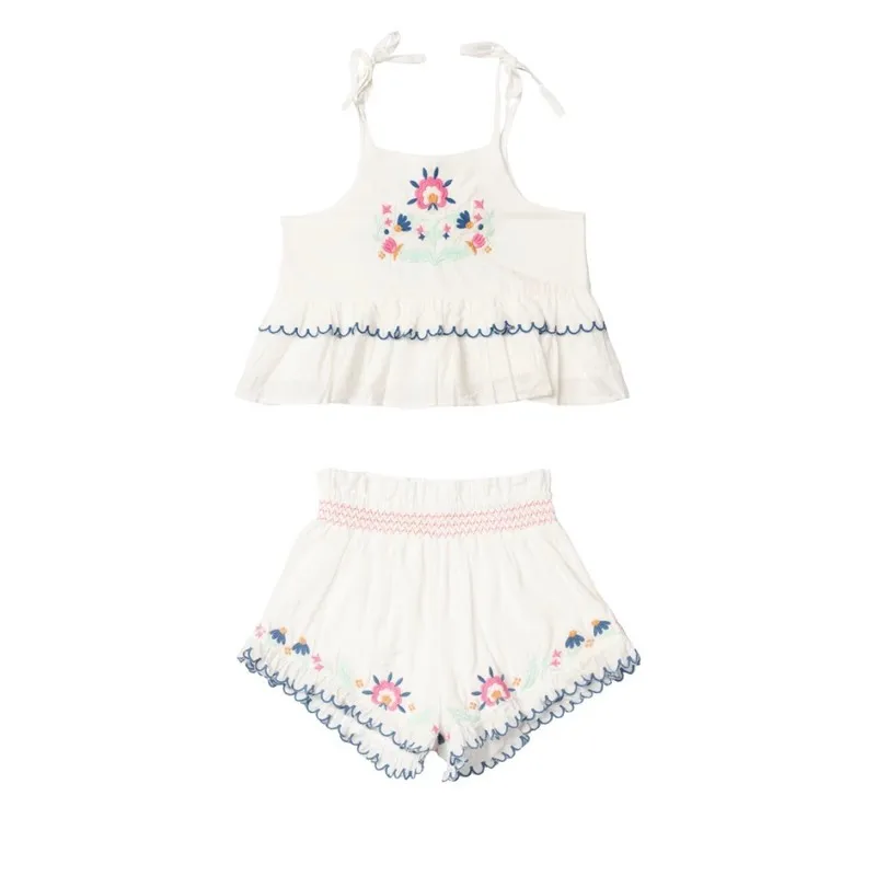 Vestido y conjuntos de blusa y short bordados estilo boho, de verano para niñas, hermosos diseños vintage