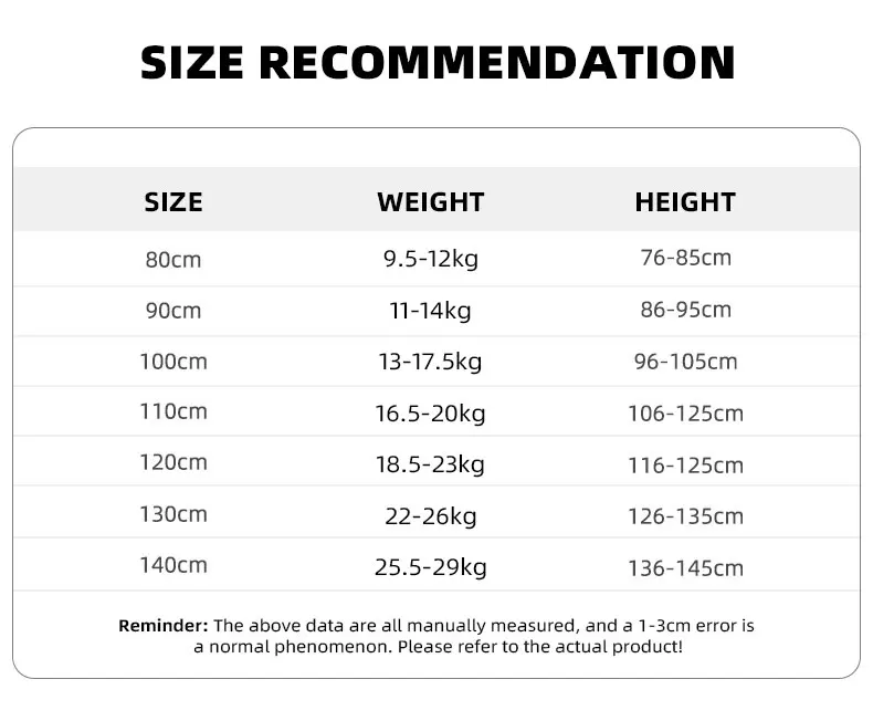 Suitable for age groups: Children (3~8 years old, 100~140cm)
