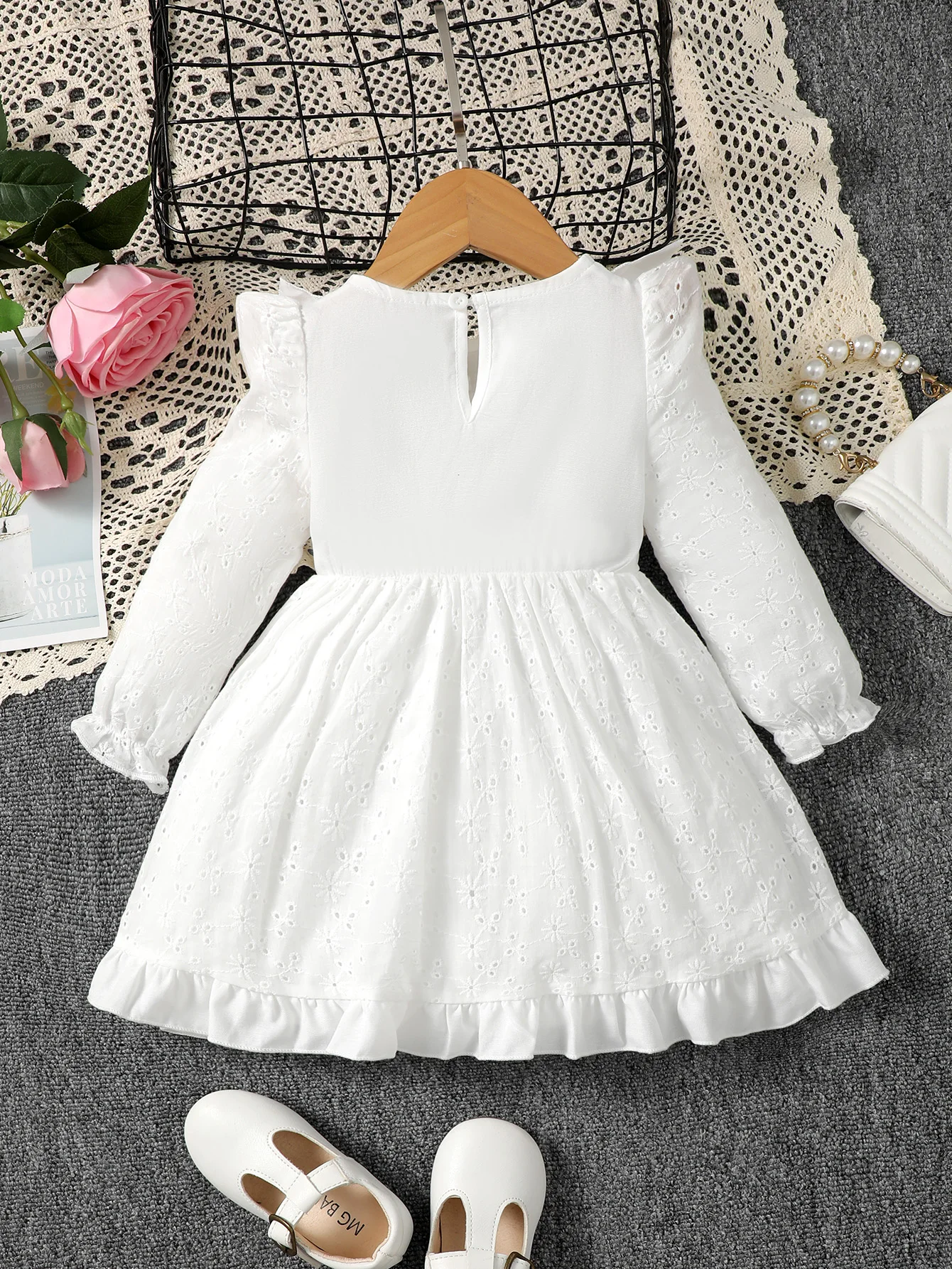 Vestido blanco de broderie con volantes y lazo de para bebé y niña, , vestido de princesa de primavera y otoño, vestido de Bautizo para bebé y niña.