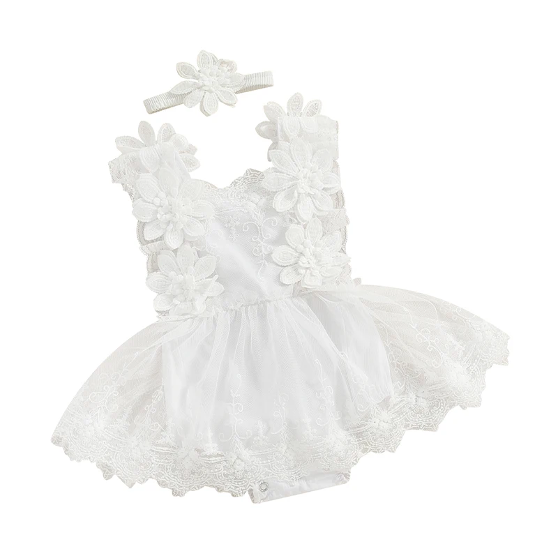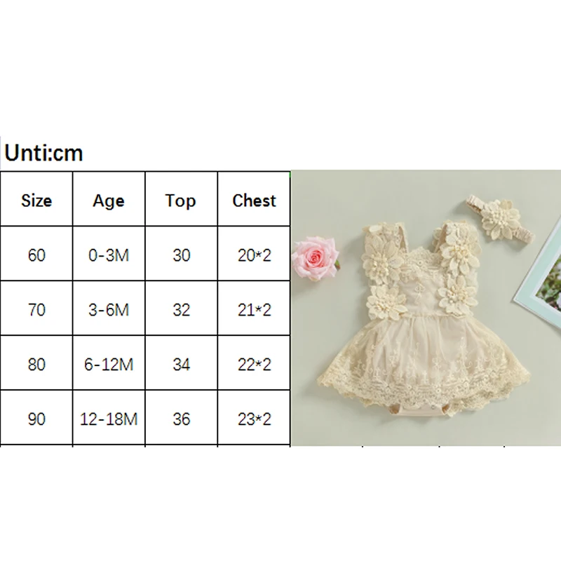Baby Girls Romper, Summer Sleeveless Square Neck Floral Lace Casual Party Street Bodysuit Tops + Head Band