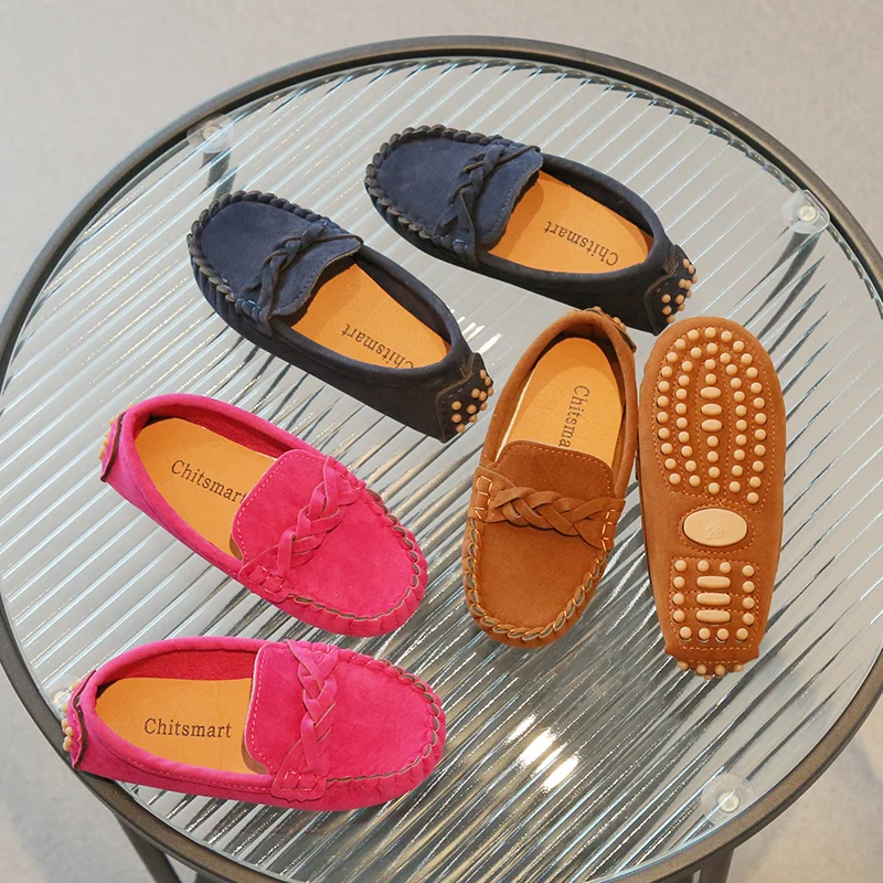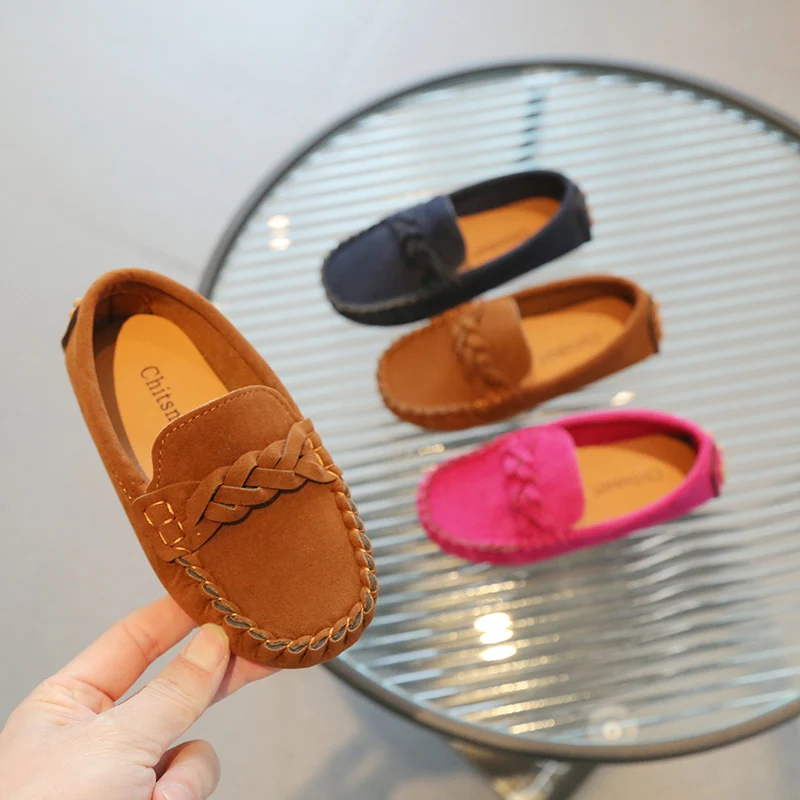 Boys Flat Leather Shoes Fashion Kids Flats Loafers Slip-on Moccasins Classic Children Party Shoes Soft Breathable Classic Braid