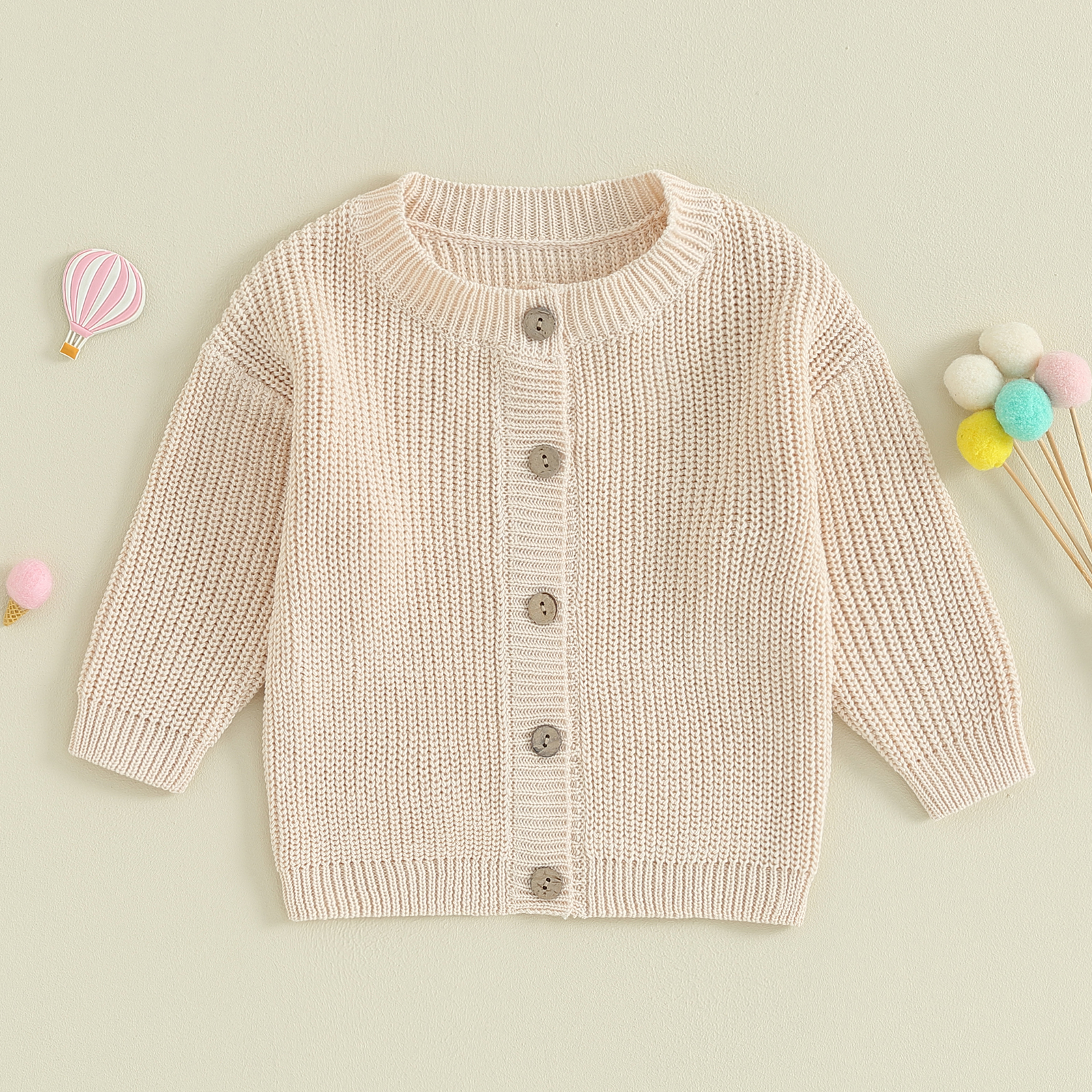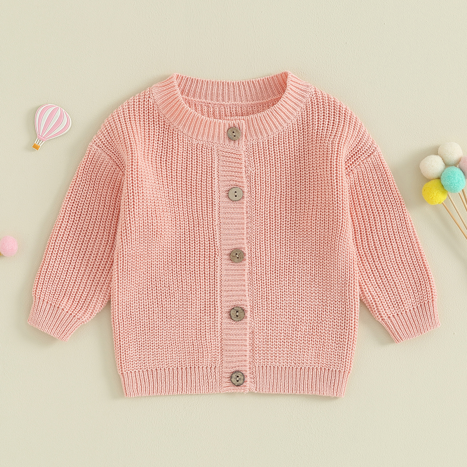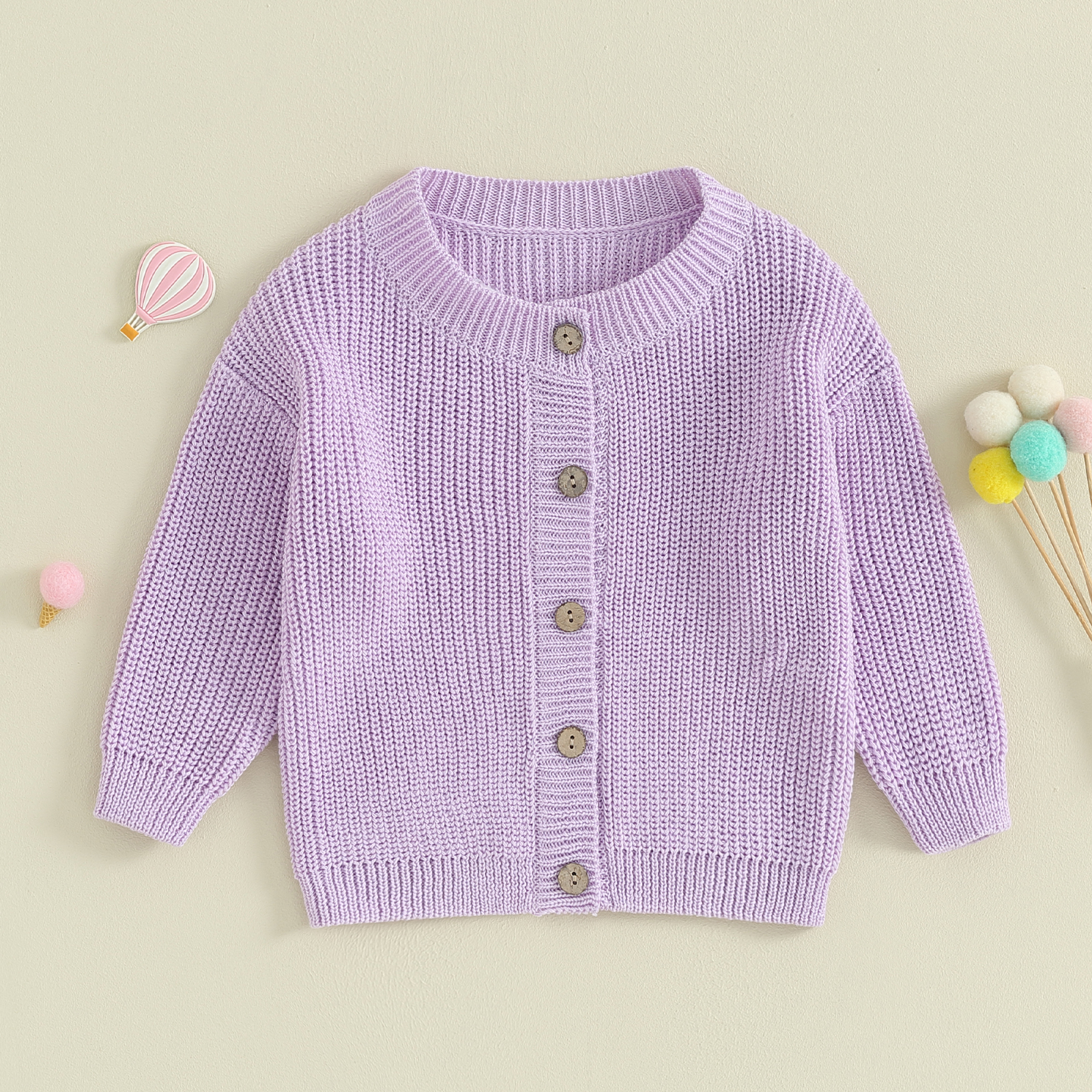 Cárdigan de punto para niñas pequeñas, bonito suéter de manga larga con cuello redondo y botones de Color sólido, Tops de otoño