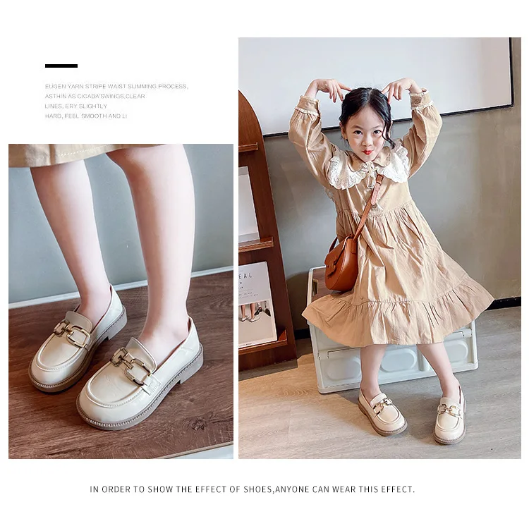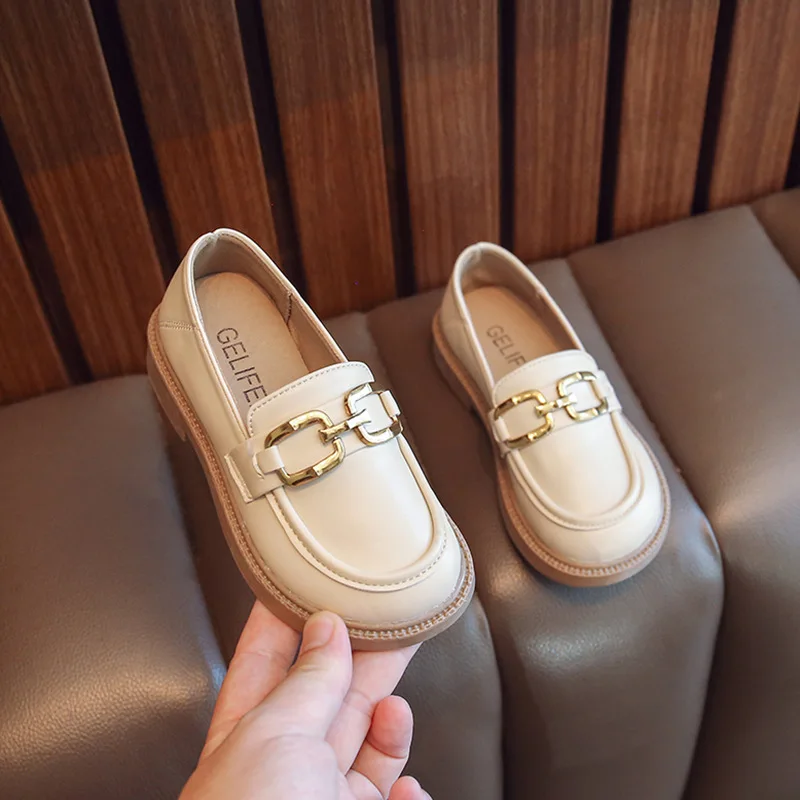 Children Girls Leather Shoes New Spring and Autumn Simple Slip-on Round-toe School Shoes Loafers Flats Moccasins Classic Formal