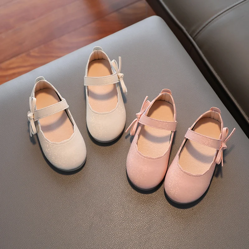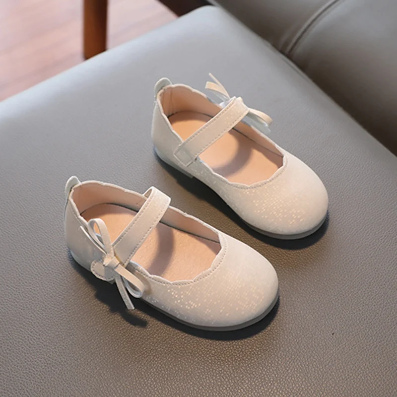 Spring Summer Children Girls Korean Style Fashion Casual Cute Elegant British Style Retro Bowknot Design Soft Bottom Non-Slip Princess Shoes Single Shoes Leather Shoes